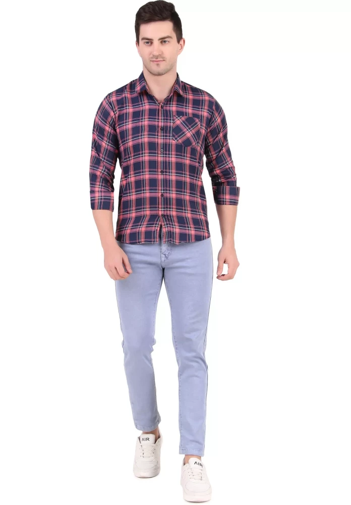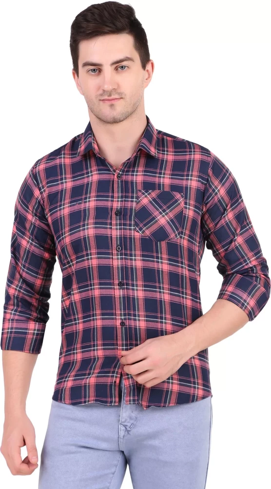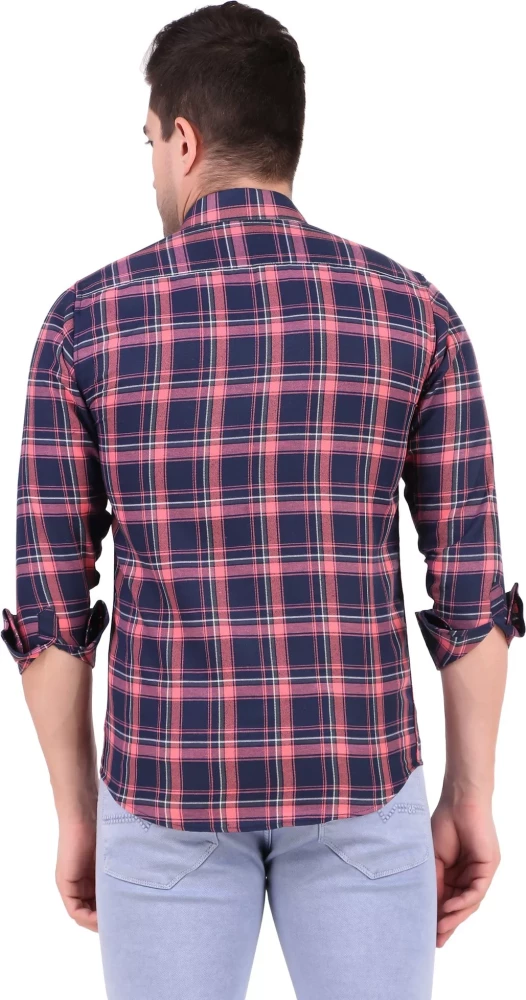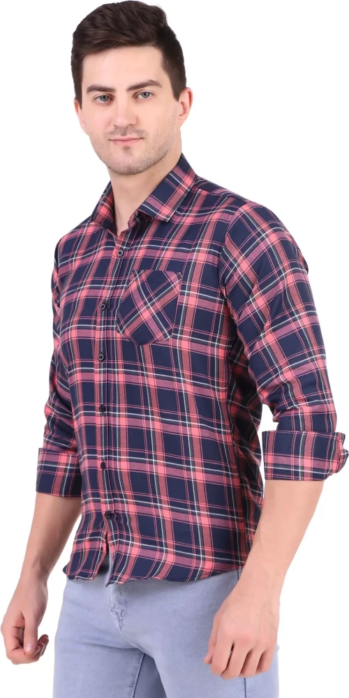 Tag: shirt cotton men wear clothes clothing pink men checkered casual shirt