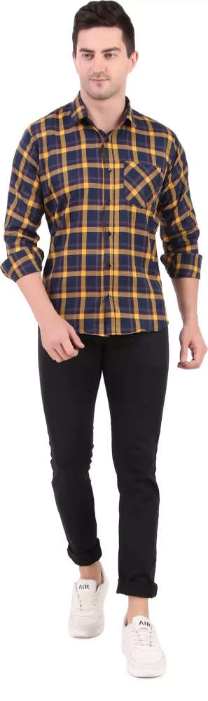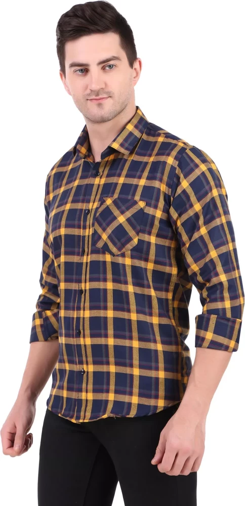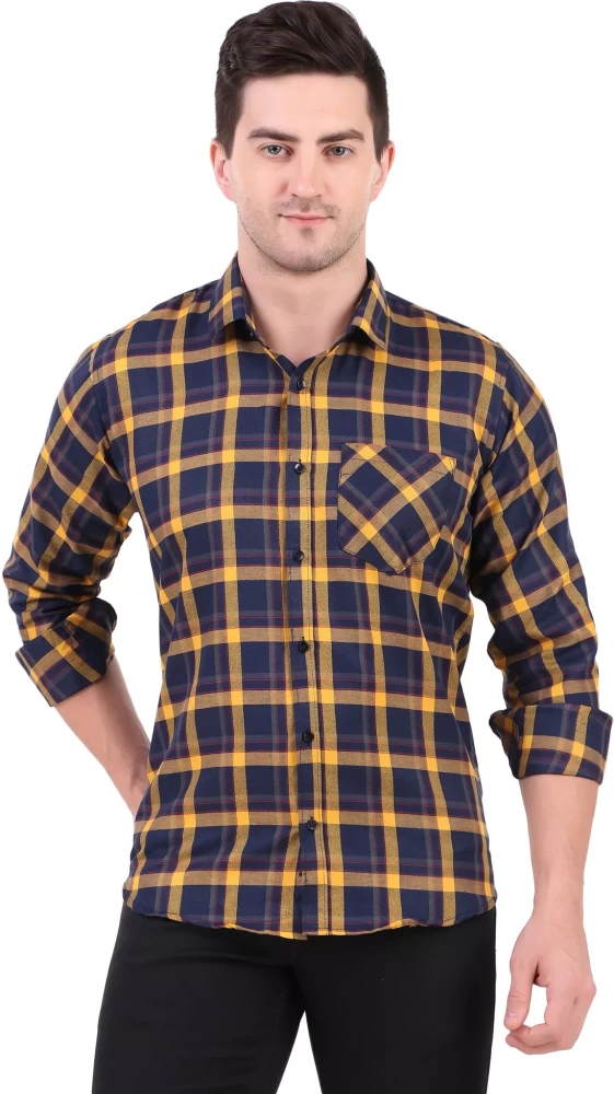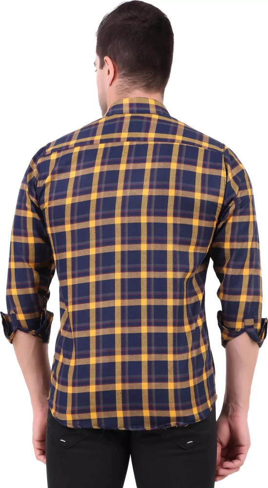Tag: shirt shirts cotton men wear clothes clothing yellow men checkered casual shirt