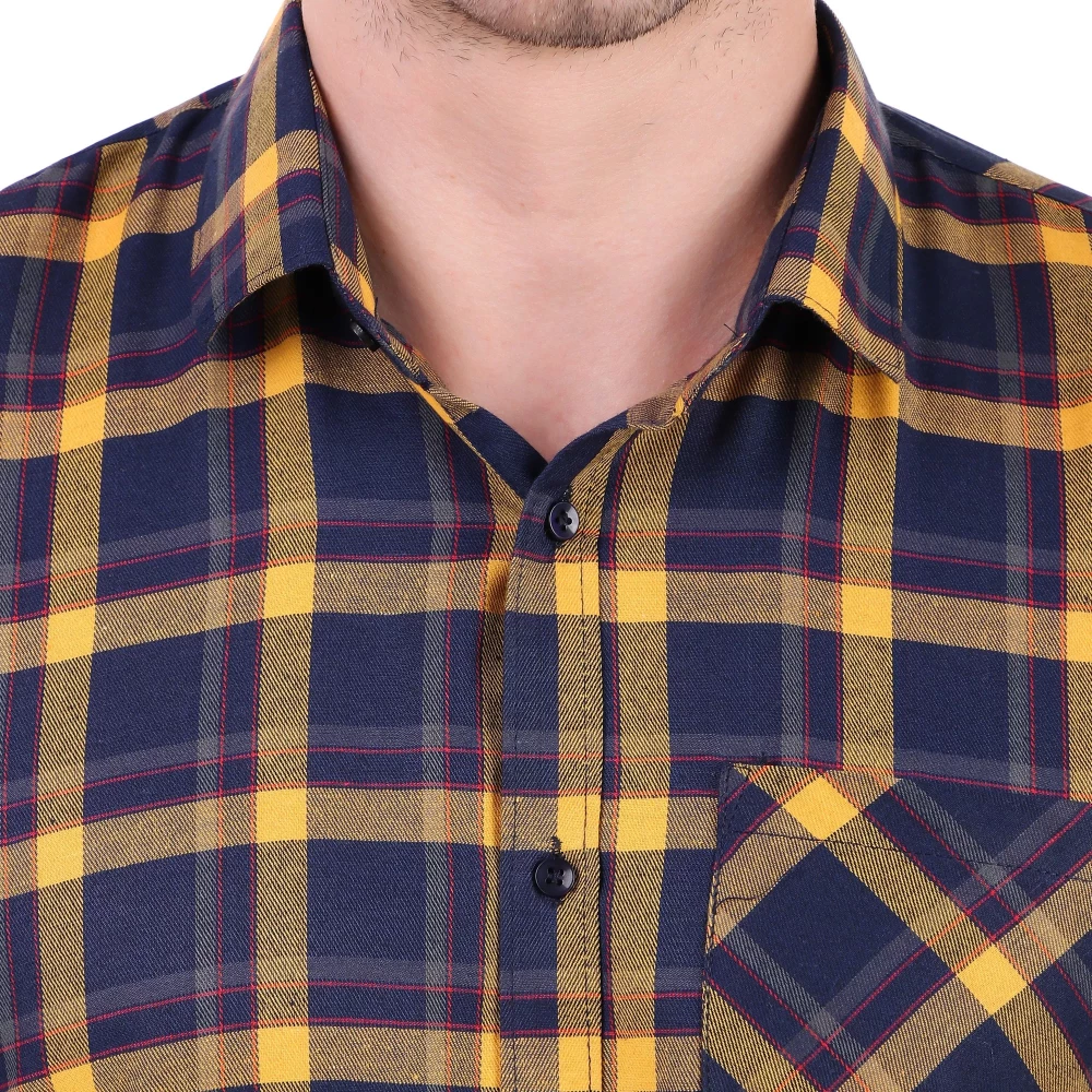 Men Cotton Yellow Checkered Shirt