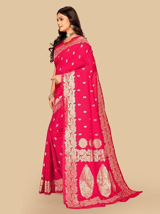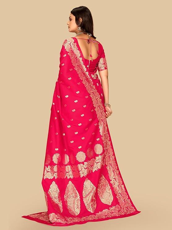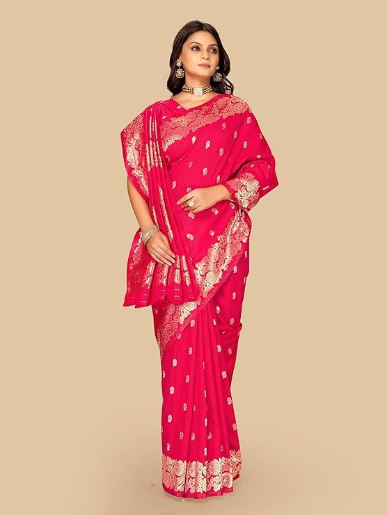 Women's Banarsi Silk Saree | Soft Banarasi Style Sari | Golden Meenakari Design & Zari Weaving Pallu |with unstiched Blouse