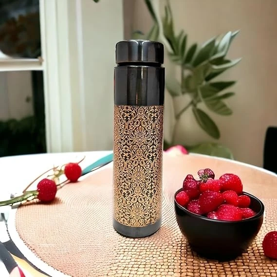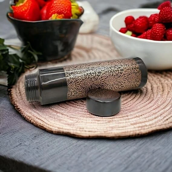 Experience a seamless blend of style, functionality, and wellness with the KUVI Copper Charge Tapper Water Bottle. With a generous capacity of 1000 milliliters, this bottle is designed to meet your hydration needs while offering convenience and reliability.