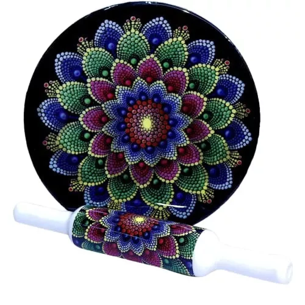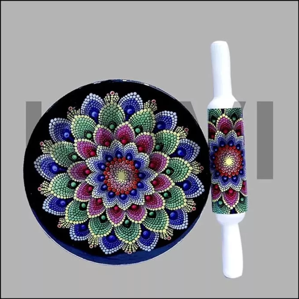 Adorned with intricate prints inspired by traditional Indian motifs, this chakla belan set adds a touch of sophistication to your kitchen decor. The vibrant colors and detailed patterns make it a delightful addition to any culinary space.