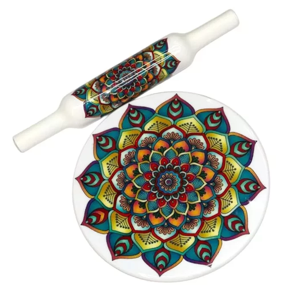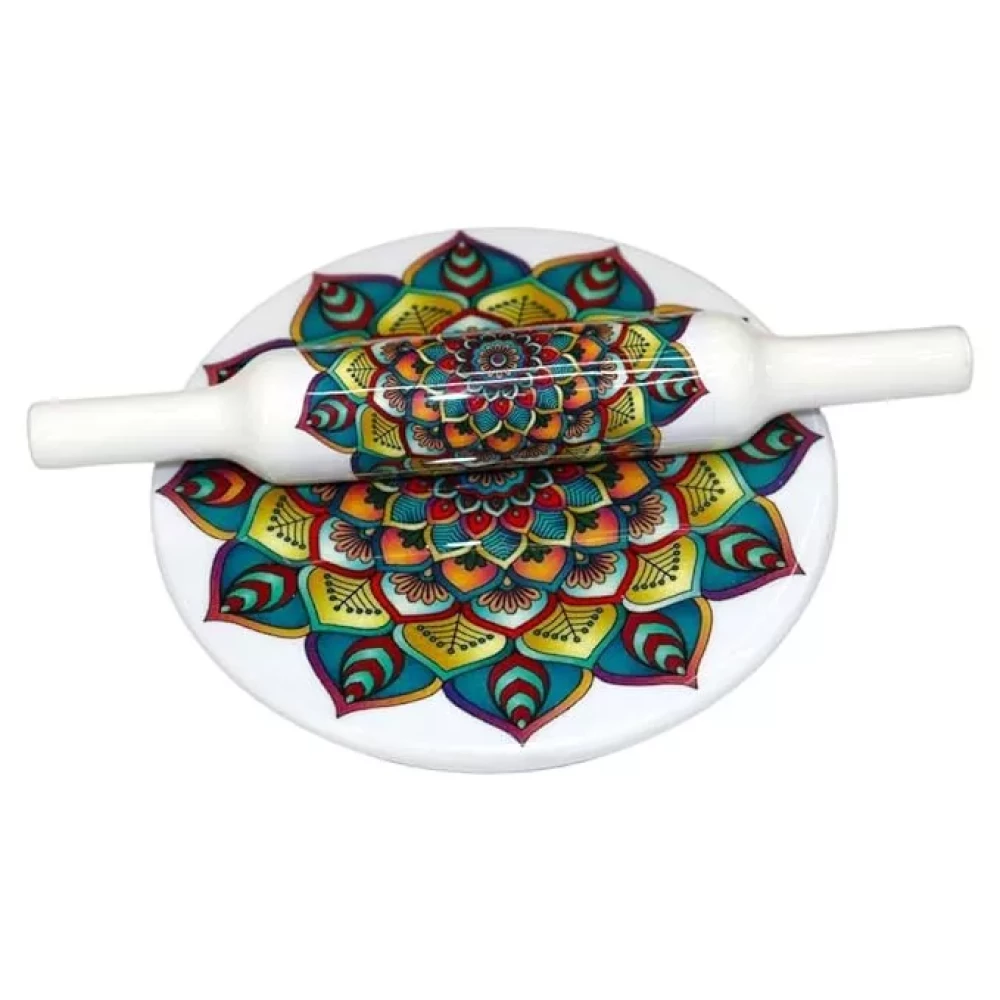 Adorned with intricate prints inspired by traditional Indian motifs, this chakla belan set adds a touch of sophistication to your kitchen decor. The vibrant colors and detailed patterns make it a delightful addition to any culinary space.