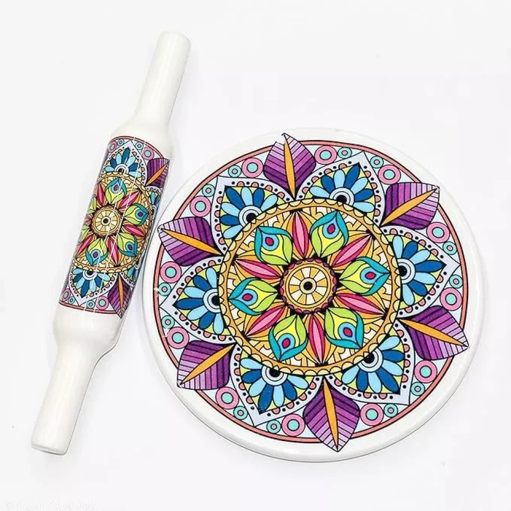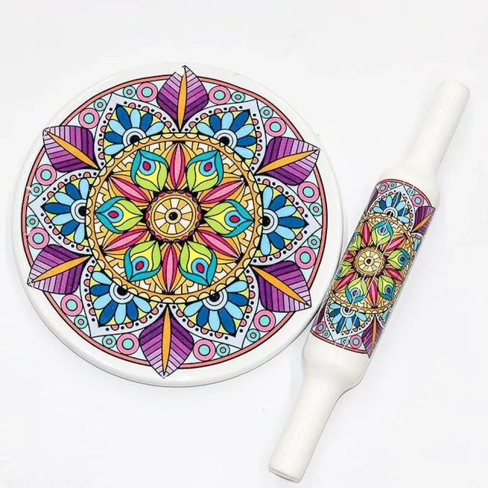 Adorned with intricate prints inspired by traditional Indian motifs, this chakla belan set adds a touch of sophistication to your kitchen decor. The vibrant colors and detailed patterns make it a delightful addition to any culinary space.