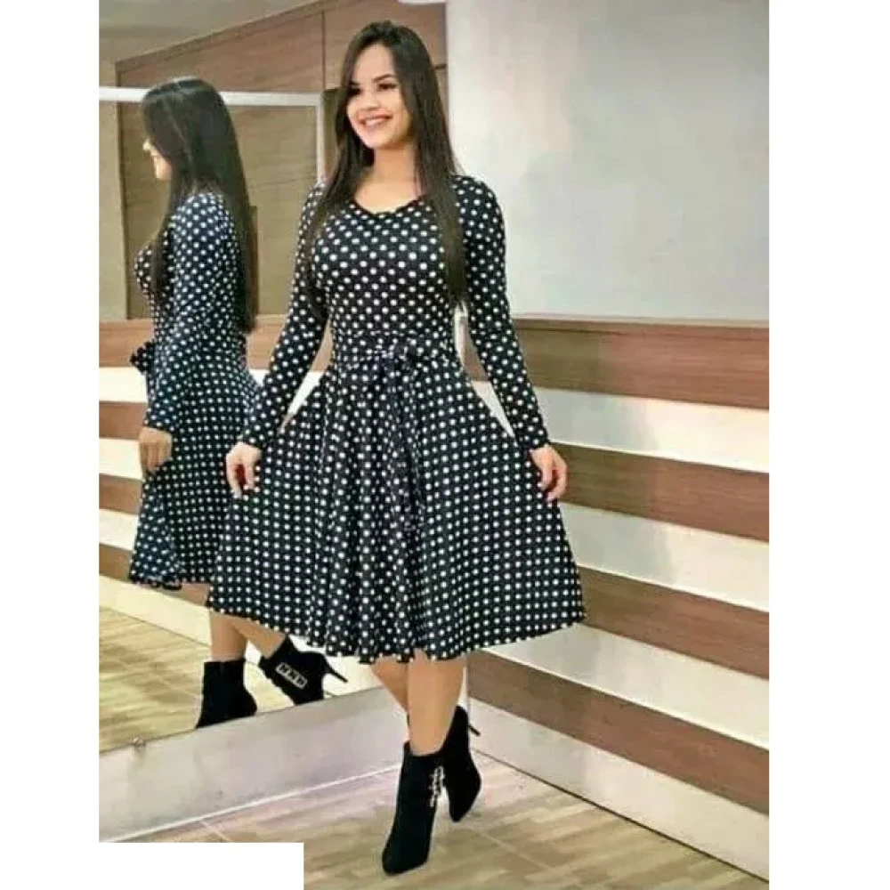 Indulge in the latest fashion trends with our Trendy Fashionista Women Dresses, crafted from premium Poly Crepe fabric. The long sleeves add a touch of sophistication, making it a versatile choice for various occasions. The dress features an alluring printed pattern that effortlessly blends style and comfort.