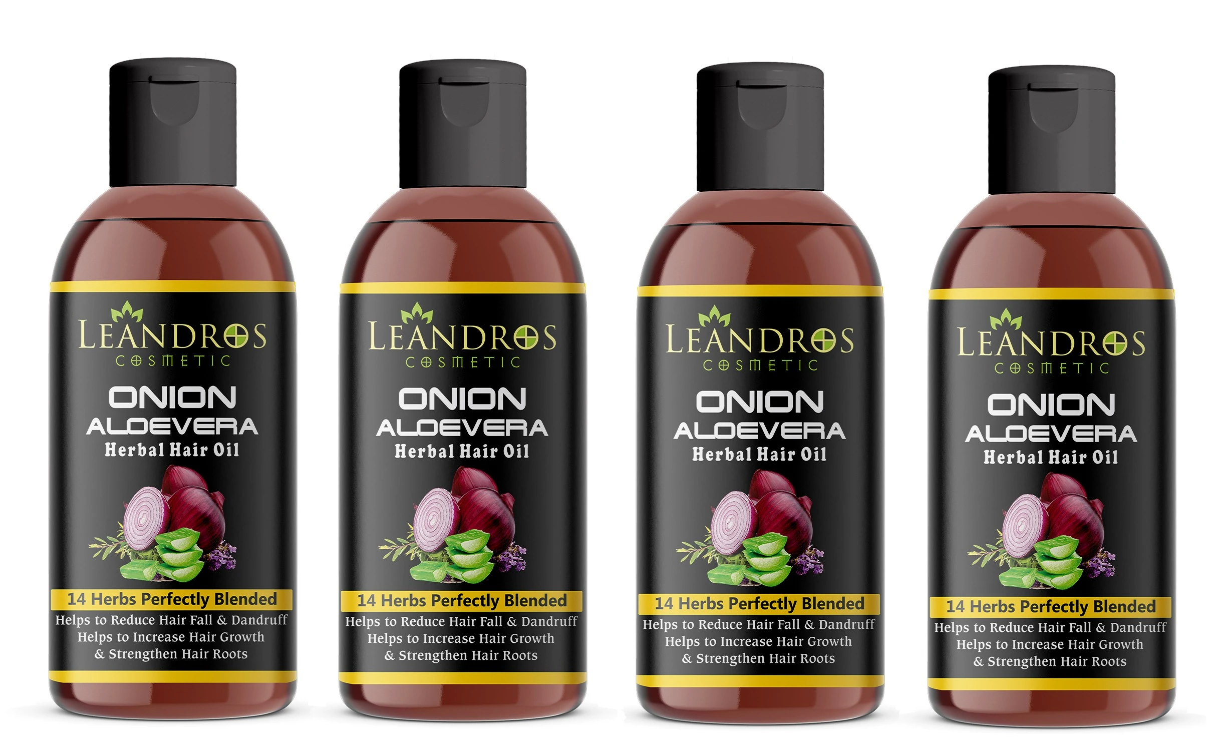 Leandros Onion Alovera Herble Hair Oil Help To Reduce Hair Fall And Dandruff For Men And Women 60ml Pack Of 4