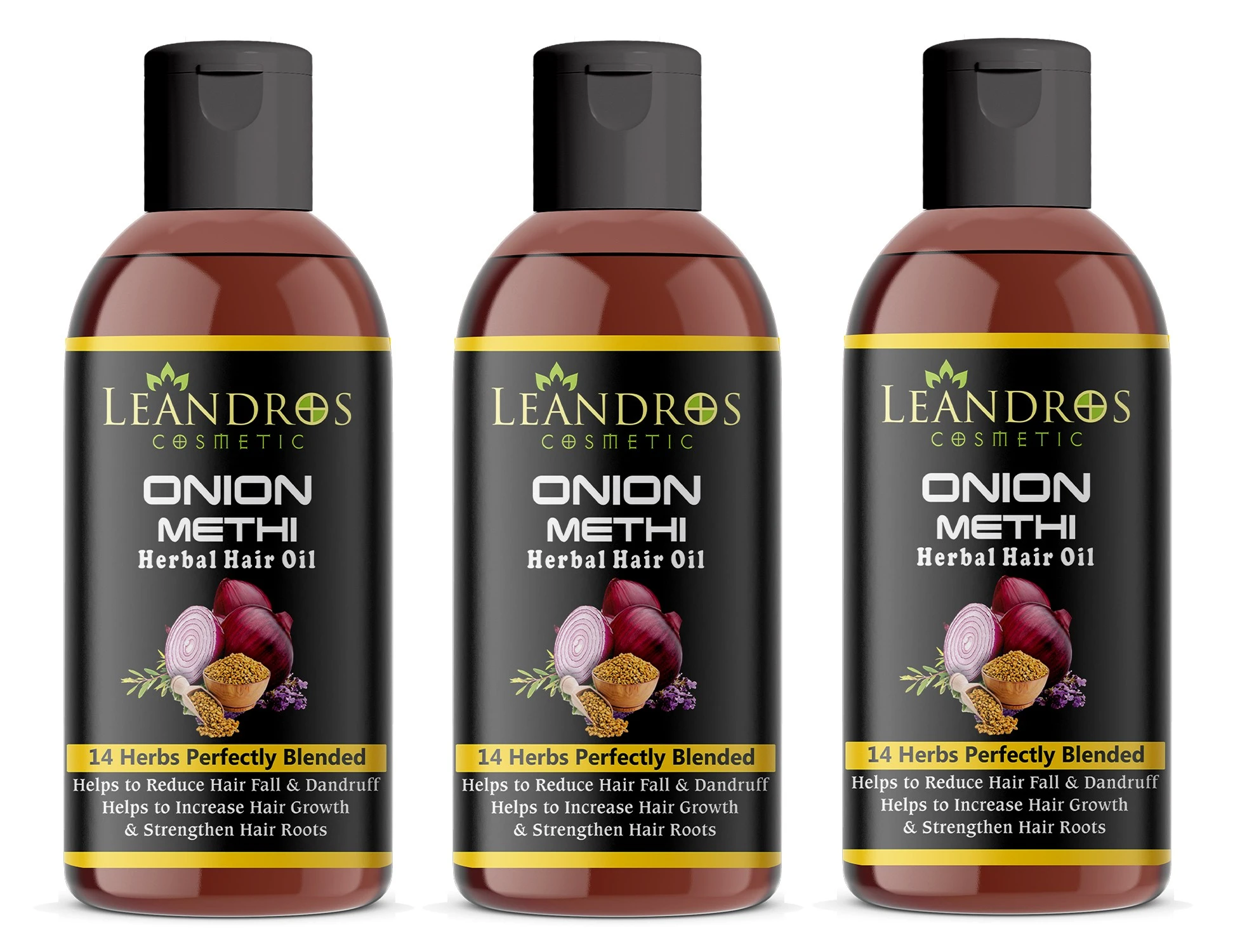 Leandros Onion Methi Herble Hair Oil Help To Reduce Hair Fall And Dandruff For Men And Women 60ml pack Of 3