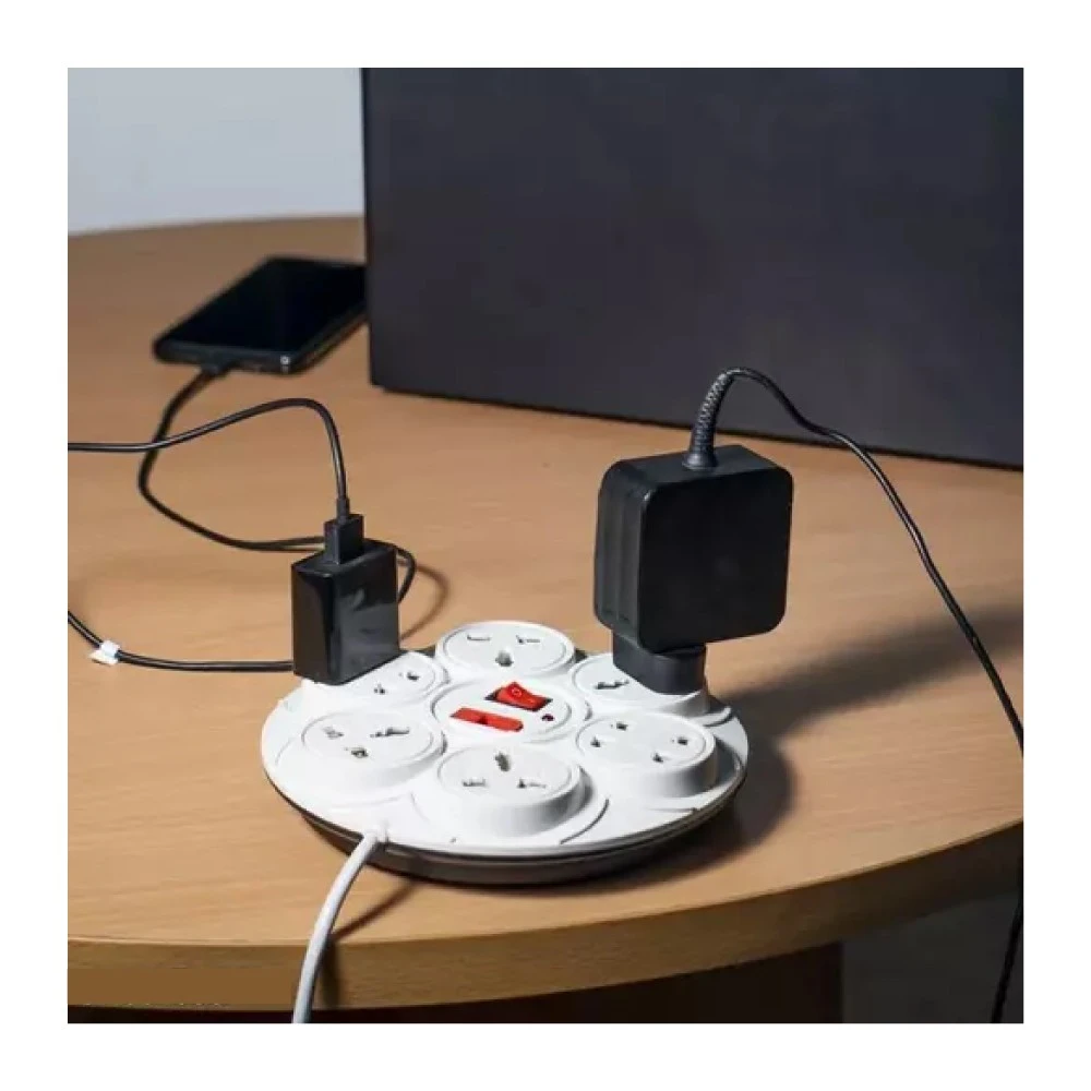 The circular design of the extension board accommodates 8 sockets, allowing you to connect multiple devices simultaneously. The plastic material ensures durability while keeping the overall weight of the extension board light for easy portability and placement.