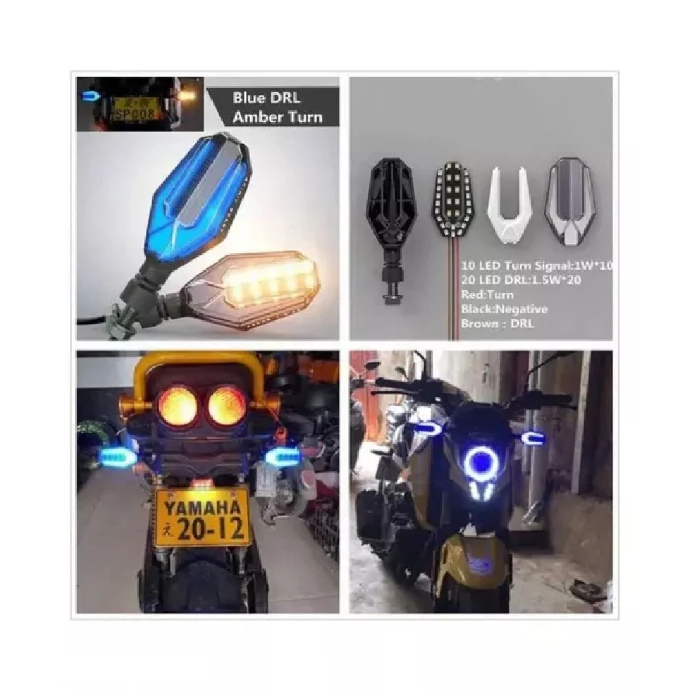 ACCESSOREEZ LEDs with double color. These indicators can add style to your bike (geared and non-geared) of any model. It is made of premium quality Material outer with consumes very low battery power giving it long life and faster on/off response time. Each indicator / turning light provide a clear and bright light for better visibility. The installation process is very easy, directly mounted bolts connected to wire harness offers plug and play functionality. The mechanism does not drain battery because of the low power consumption technology thereby giving your bike a healthy and long battery life.