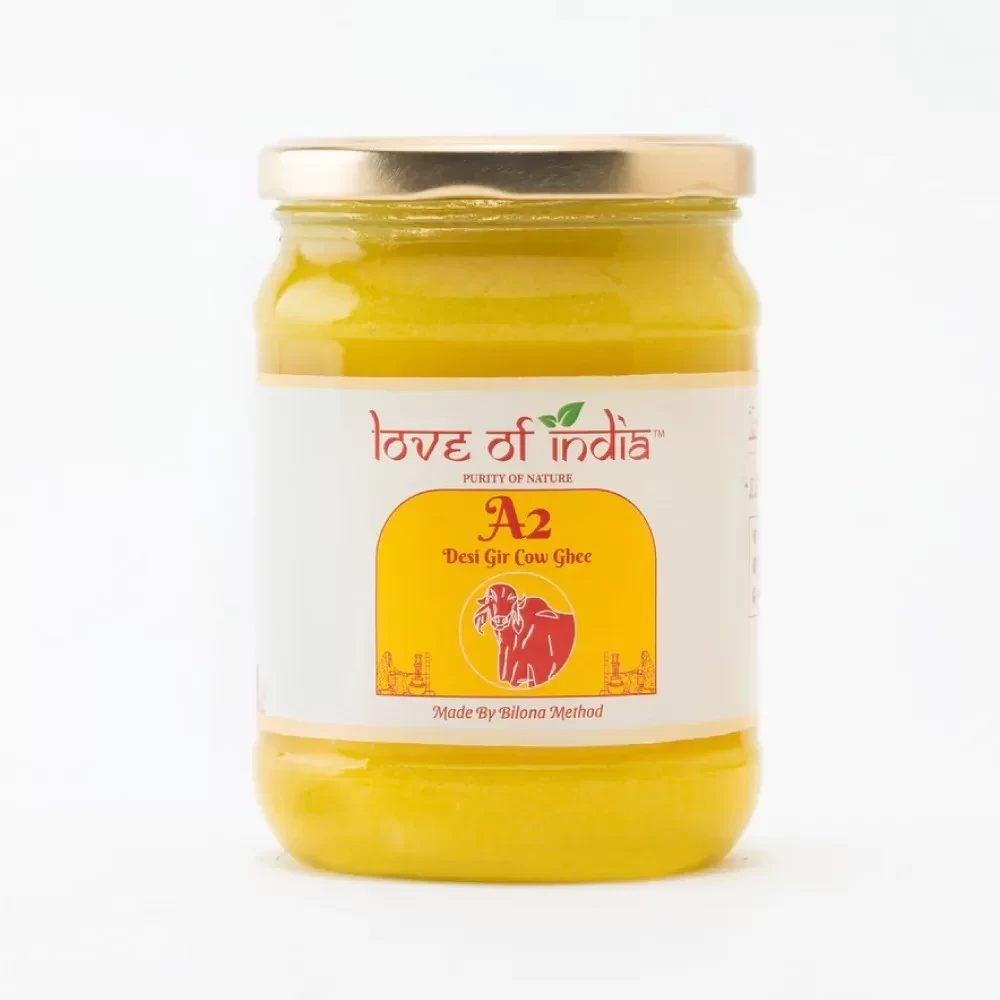 Desi Gir Cow Ghee, prepared with love for a healthy you. Love of India's Desi A2 Gir Cow Ghee is prepared using the traditional ‘Bilona’ method and is a vital source of holistic nourishment and taste. It's the Finest ghee made from A2 milk, using the Vedic process of churning yogurt and filtering as mentioned in Ayurveda.