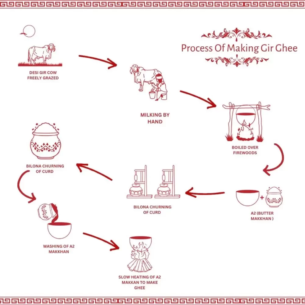 **Please note that the aroma, flavor, and color of Desi A2 Gir Cow Ghee may vary from batch to batch, as it is prepared in small batches with yogurt set in earthen pots under manual supervision.