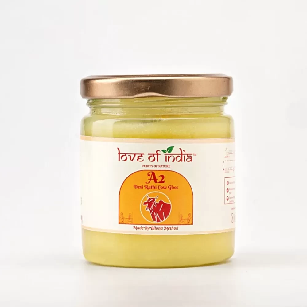 It's the Finest ghee made from A2 milk, using the Vedic process of churning yogurt and filtering as mentioned in Ayurveda. Being 100% natural, Love of India’s Desi Rathi Cow A2 ghee is perfect for everyday cooking.
