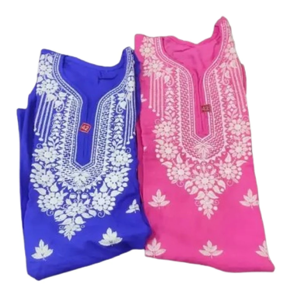 Featuring long sleeves, these kurtis provide added coverage and warmth, making them suitable for year-round wear. The intricate chikankari pattern adds a touch of traditional charm and sophistication, making these kurtis perfect for both casual and semi-formal occasions.