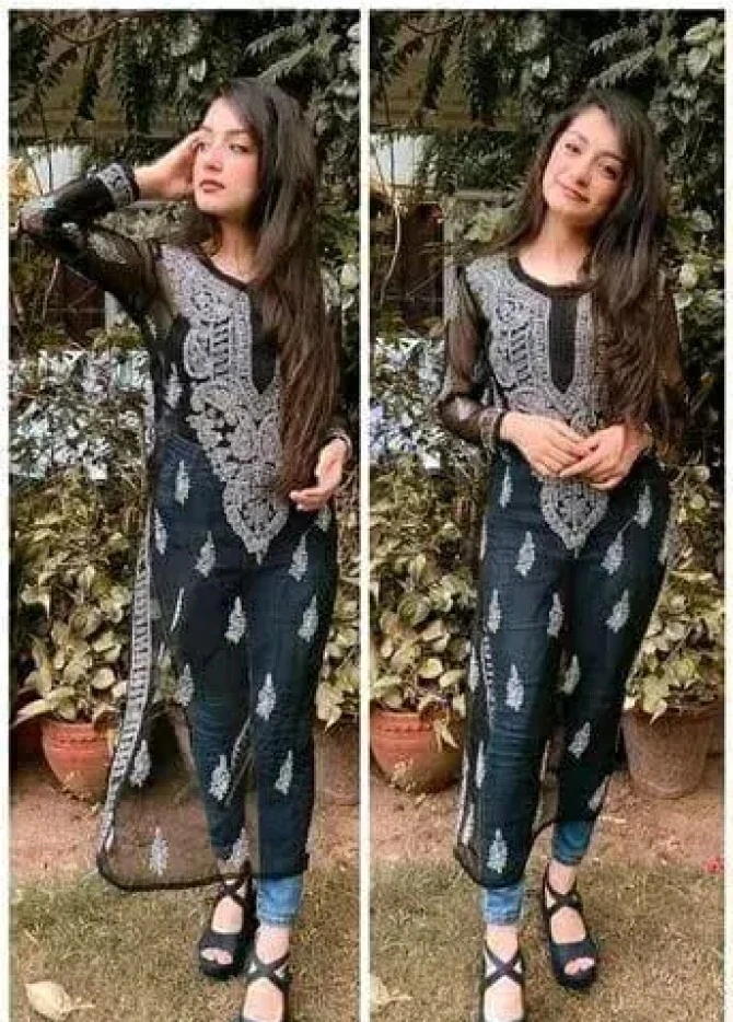 Perfect for both formal and casual occasions, this black Chikankari kurti is versatile and stylish. Pair it with your favorite bottoms and accessories to create a chic and fashionable look that will turn heads wherever you go. Elevate your wardrobe with the timeless charm of the Lucknowi Fashion Chikankari Black Kurti.