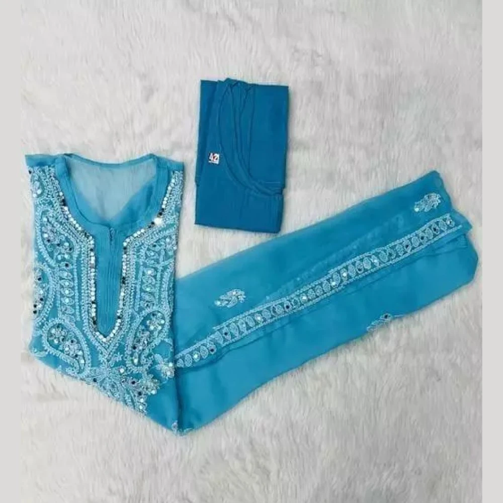 LUCKNOWI FASHION GEORGETTE GAALA BOOTI CHIKANKARI KURTI Blue