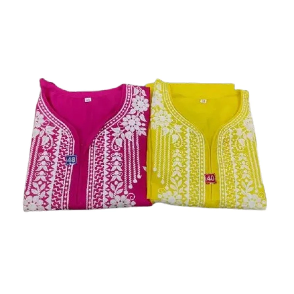 Add a pop of color and elegance to your ethnic wardrobe with the Women Cotton Straight Chikankari Yellow and Pink Kurti combo. Elevate your style and embrace the beauty of traditional craftsmanship with these exquisite kurtis.