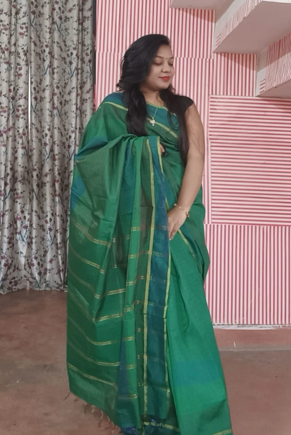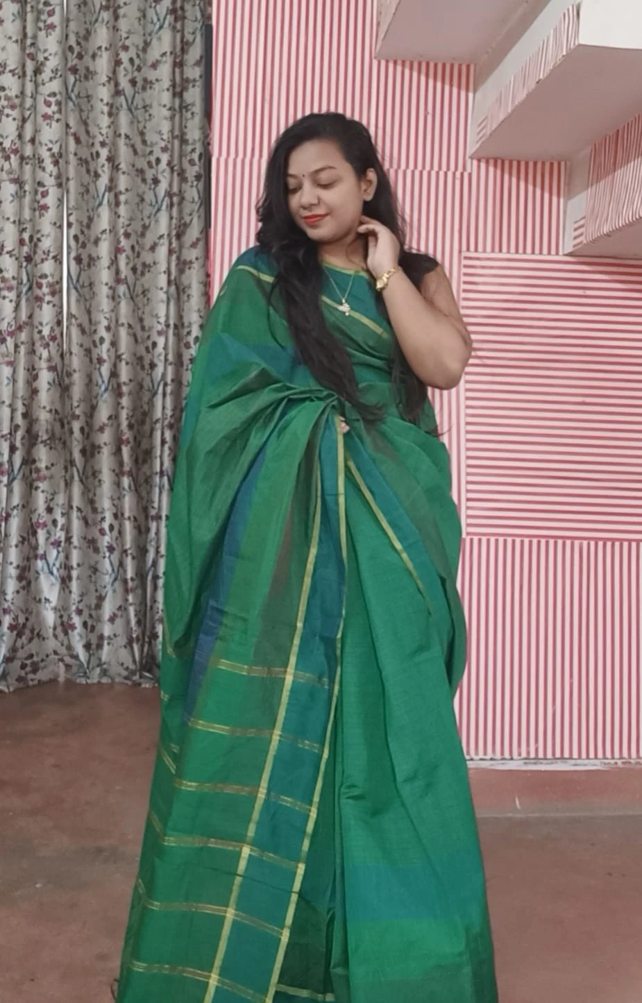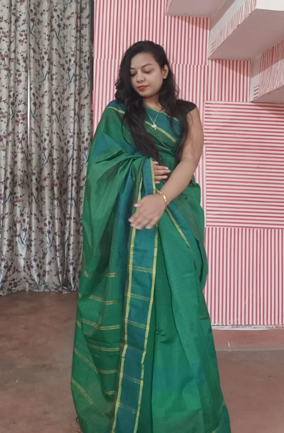 - Occasion: Suitable for a range of occasions, from casual outings to festive celebrations, the Green Cotton Saree effortlessly combines comfort with style, making it a versatile addition to any wardrobe.
