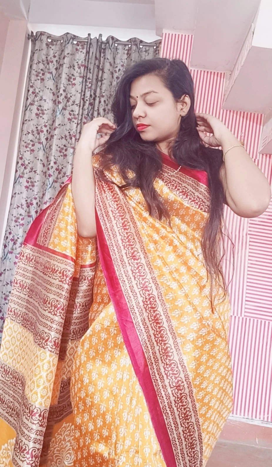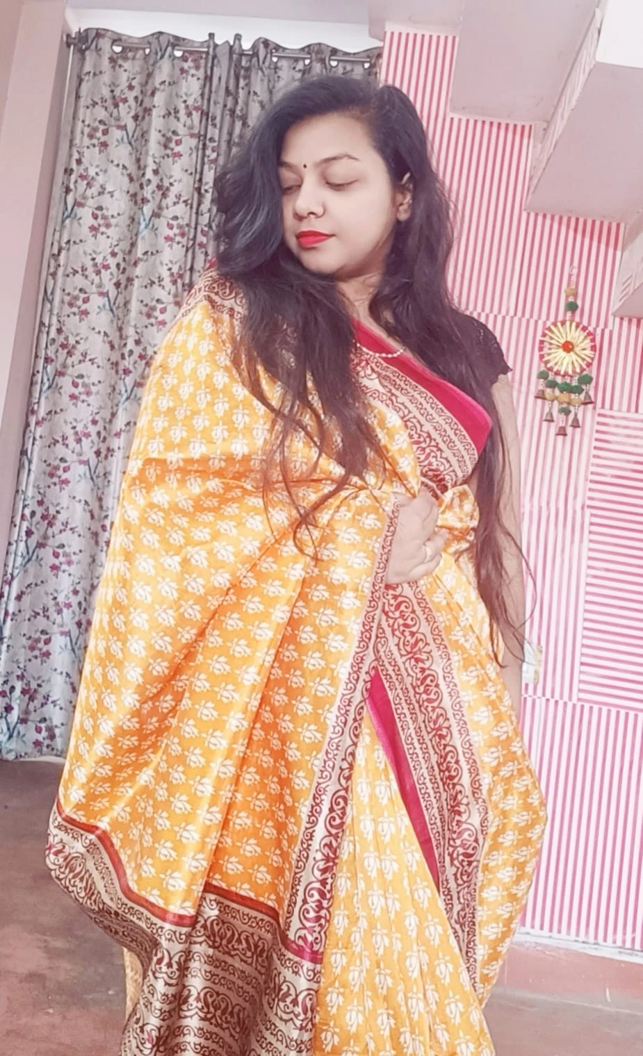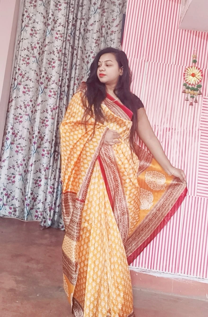 To maintain the pristine condition of this exquisite ensemble, we recommend hand washing with care. Elevate your festive attire with our Silk Saree with Floral Printed Blouse in yellow, and make a statement with your impeccable style at every celebration.