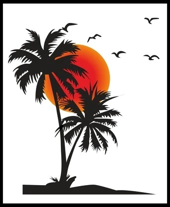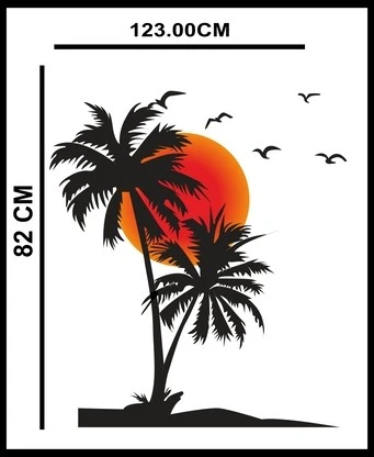 MADHUBAN DÉCOR Coconut Tree wall sticker Tree Beach Birds decorative wall sticker Self Adhesive Sticker (Pack of 1)