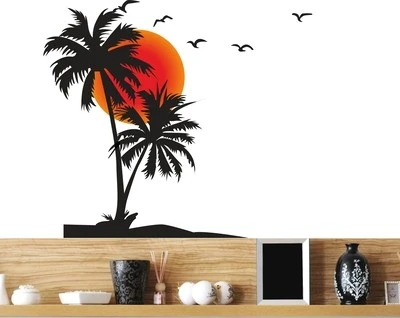 Coconut Tree wall sticker Tree Beach Birds decorative wall decal sticker (mullticolor , size 90x101cm)