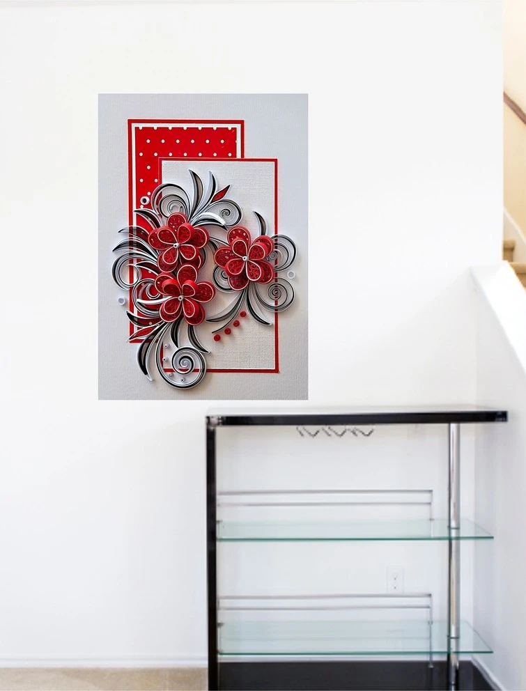 MADHUBAN DECOR 3D Look Decorative Red Flower With Frames HD Wall Poster Self Adhesive Sticker (Pack of 1)