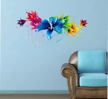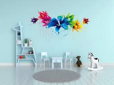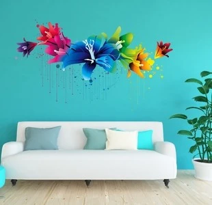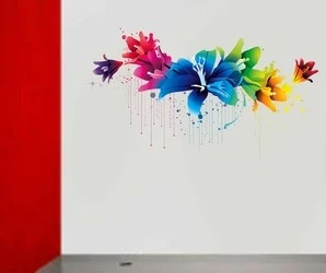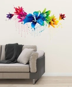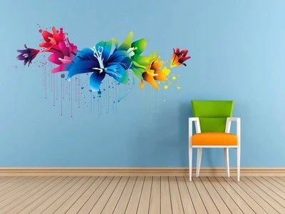 • colourful wall art mural with cool flowers 3d wall sticker in hd quality