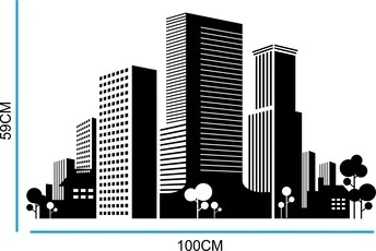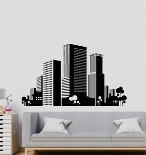 MADHUBAN DECOR Modern Buildings Black Wall Decal and Sticker Self Adhesive Sticker (Pack of 1)