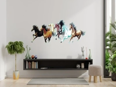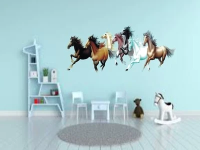 MADHUBAN DECOR UNIQUE HORSES MULTICOLOR Self Adhesive Sticker (Pack of 1)