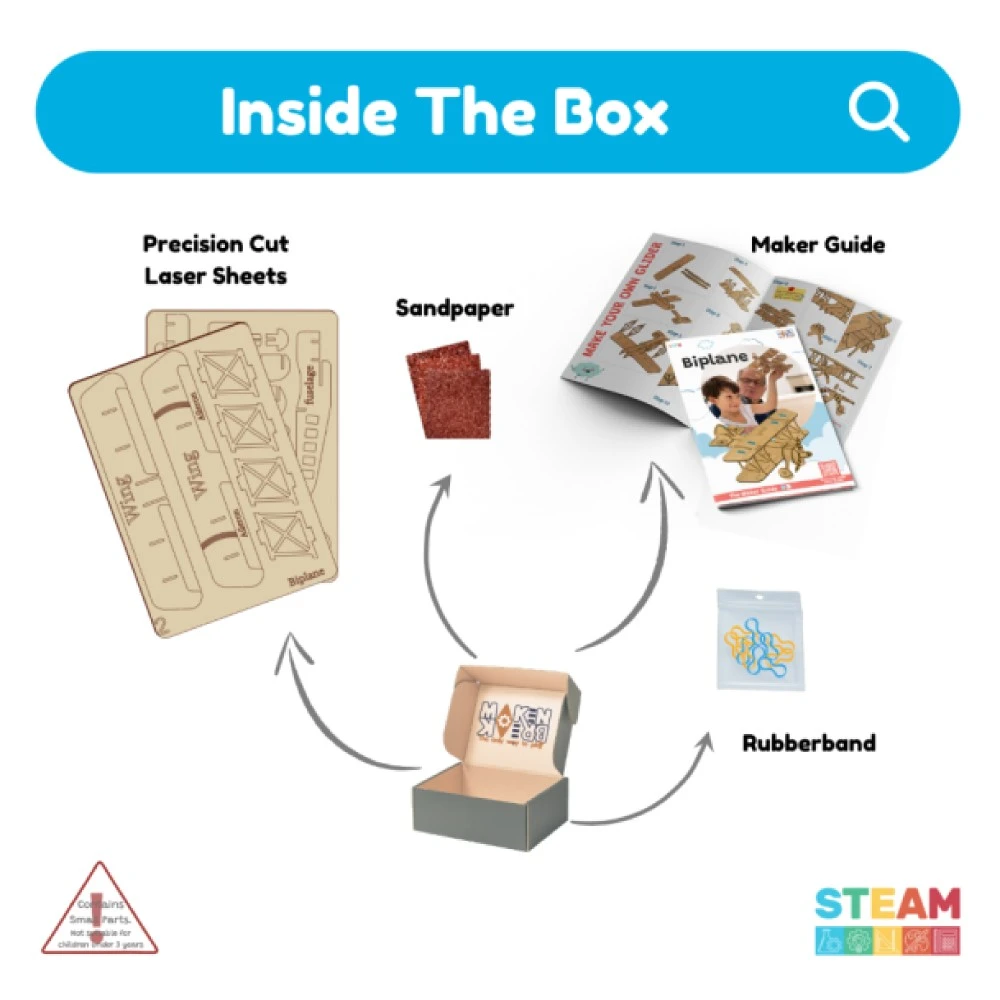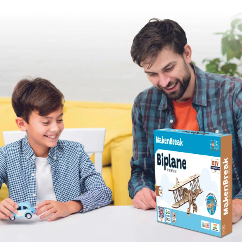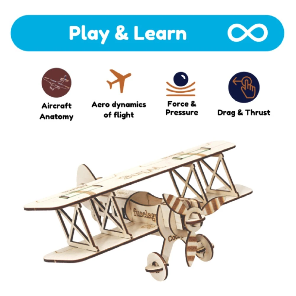 Biplane is a fixed-wing aircraft with two main wings stacked one above the other. Kids learn its anatomy while building the aircraft and have fun pretend-flying it around the house.