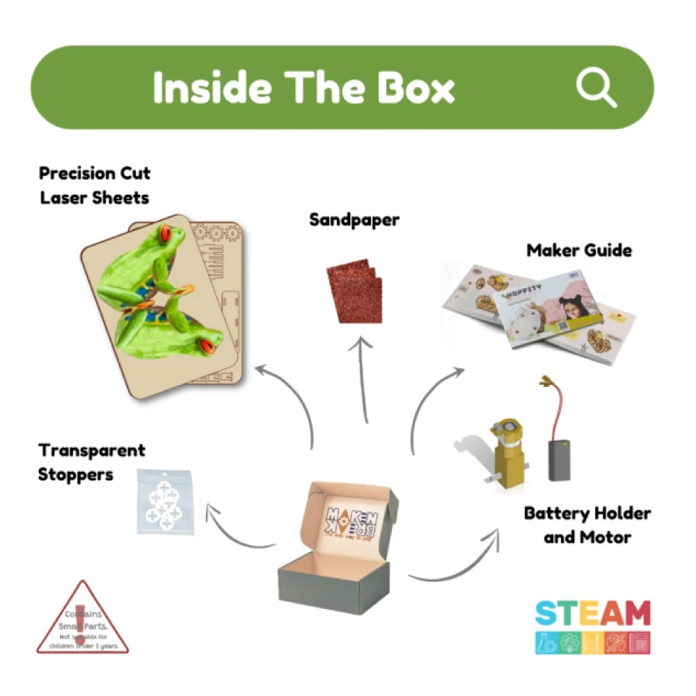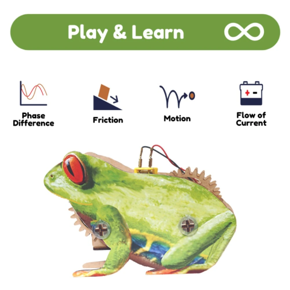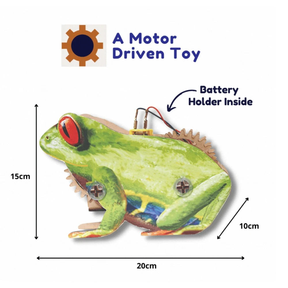 Are you ready for a hopping good time? The Ribbety Frog is here to leap into action and introduce you to the fascinating world of gears and movement. This delightful toy combines education and entertainment, making learning an absolute blast Designed with curious minds in mind, the Ribbety Frog is a realistic and fun frog-shaped toy that reveals the magic of gears through simple mechanics. With each turn of the gears, the frog’s legs extend and retract, simulating the dynamic motion of a real frog’s jump. It’s the perfect tool for children to explore phases, understand how gears work, and even modify the frog’s motion with just a few adjustments to the gear train.