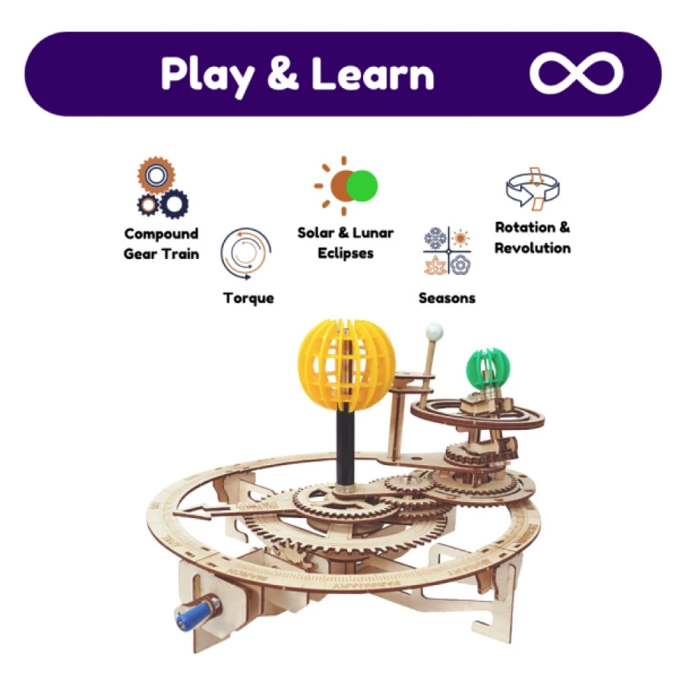 asking space science accessible for kids – the Tellurion Orrery is a perfectly practical model explaining the interrelation between the relative positions and motion of Earth, Sun, and Moon. It brings seemingly complex space concepts to kids’ fingertips, making them easy to grasp and fun to understand.