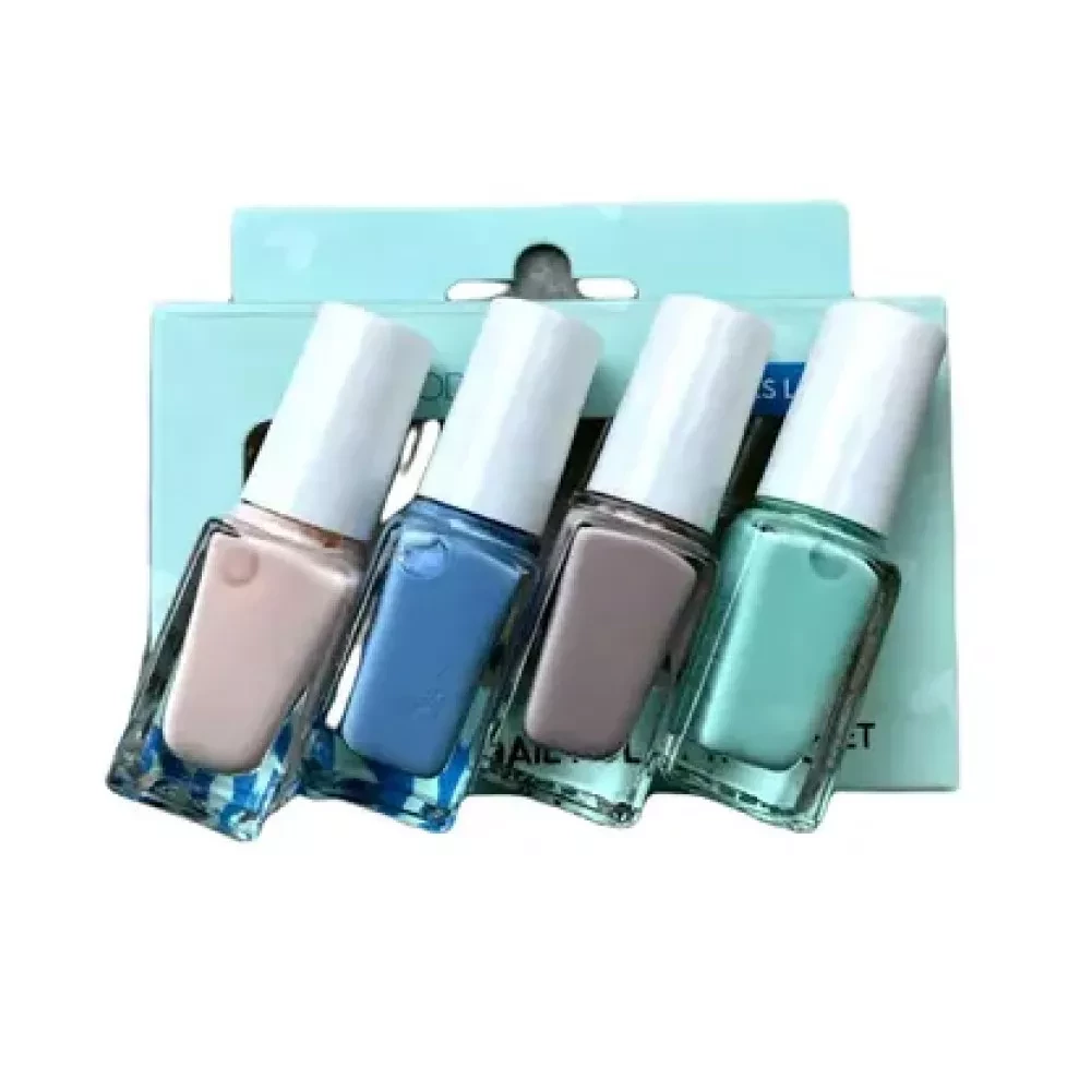 Discover the beauty of pastel shades with the Makeup Fever Mini Nail Polish Travel Set - Pastels Love. This travel-friendly set includes four mini nail polishes in a delightful array of pastel hues, each with a dazzling metallic finish. The compact size of these polishes makes them perfect for carrying in your handbag or travel kit, ensuring your nails look fabulous no matter where you are.