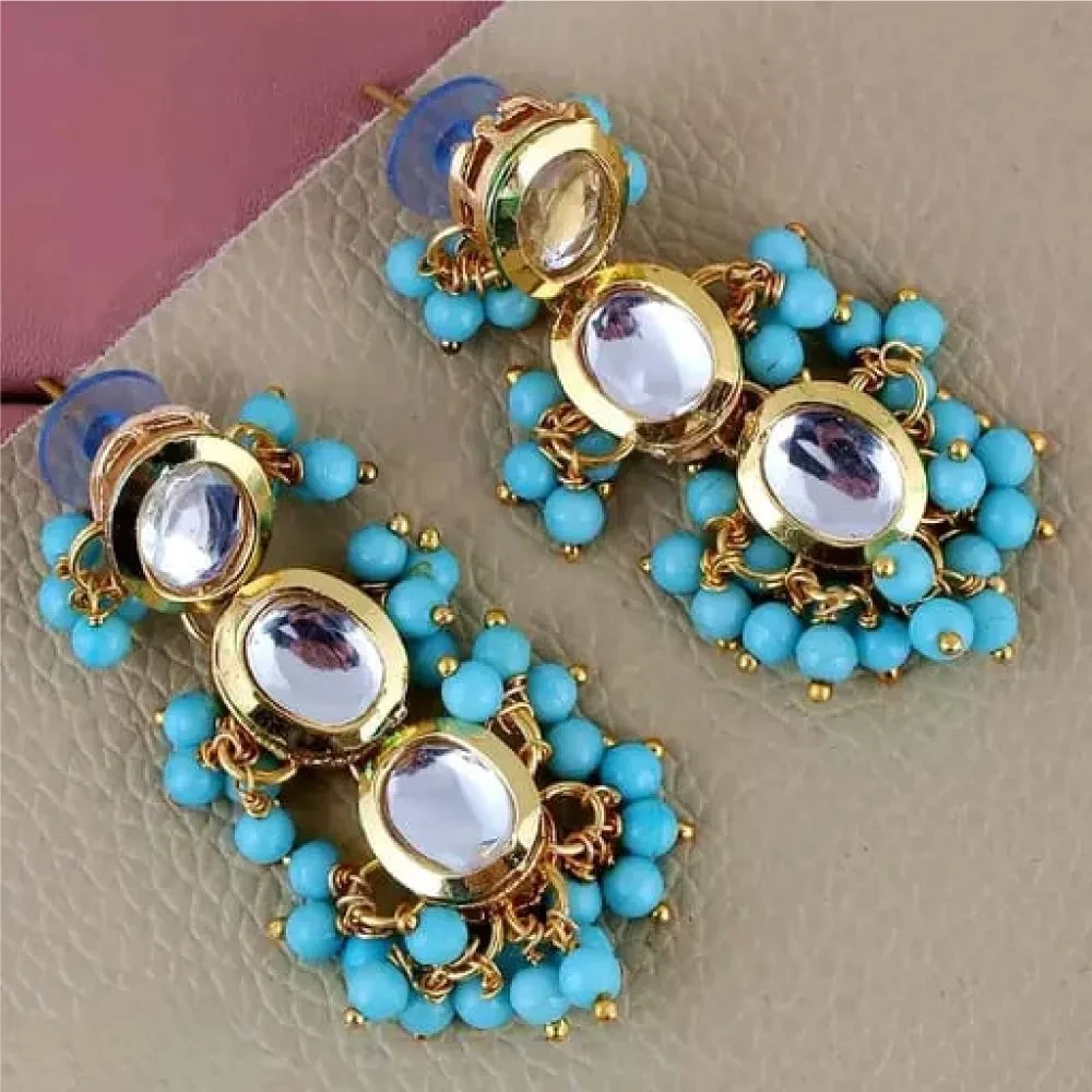 Gold Plated Firozi Color Necklace set With Earring
