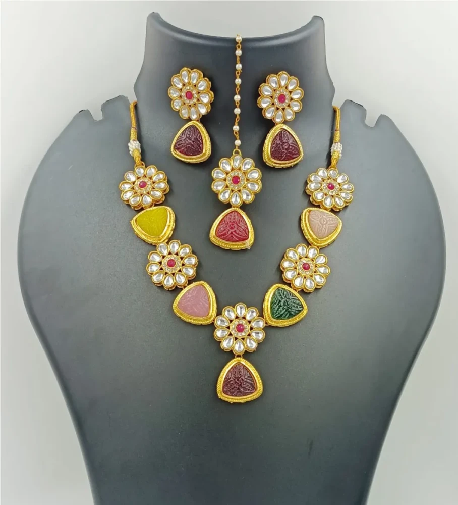 • Type: Complete set including a necklace, earrings, and maangtika, providing a cohesive and sophisticated look.
