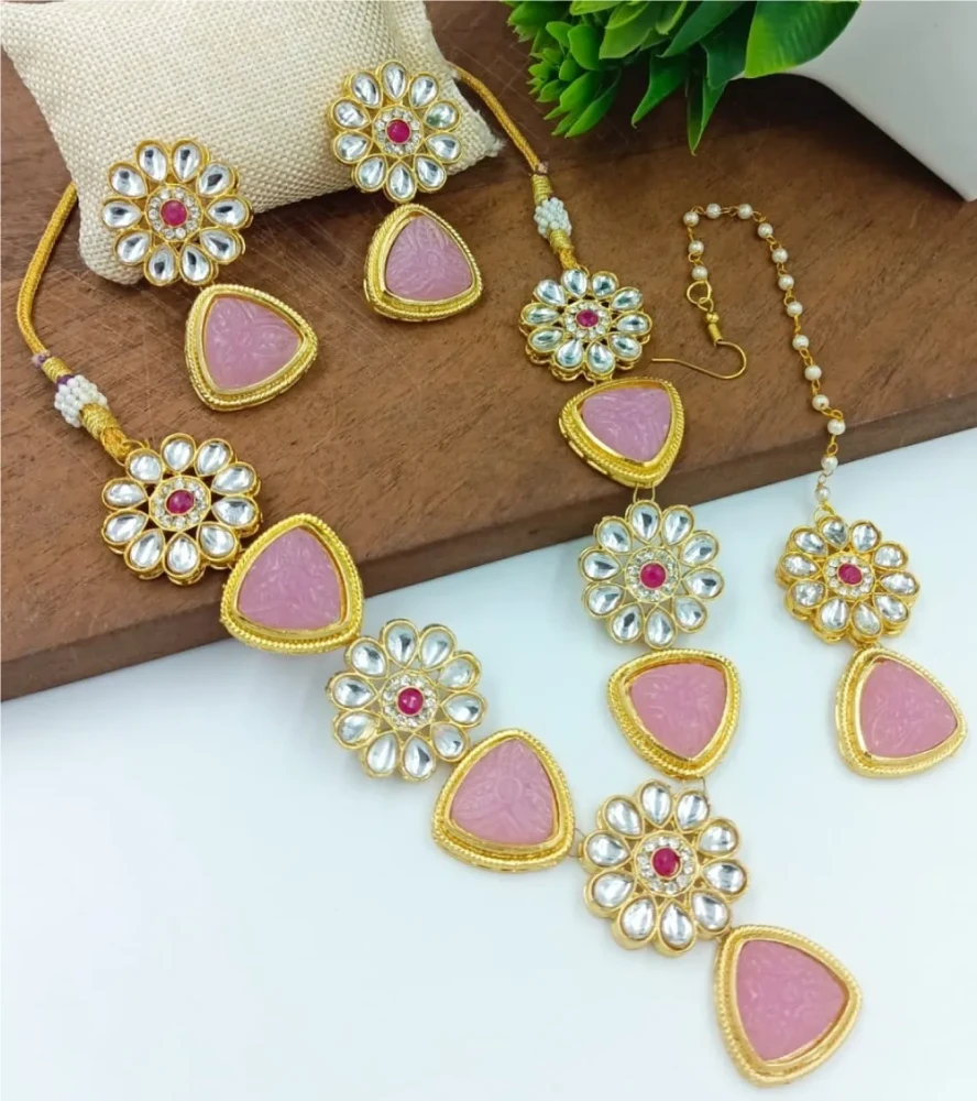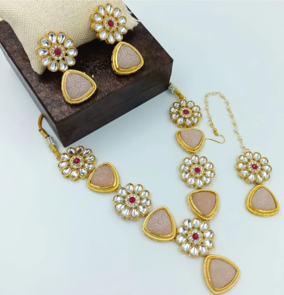 • Type: Complete set including a necklace, earrings, and maangtika, designed for a coordinated and sophisticated look.
