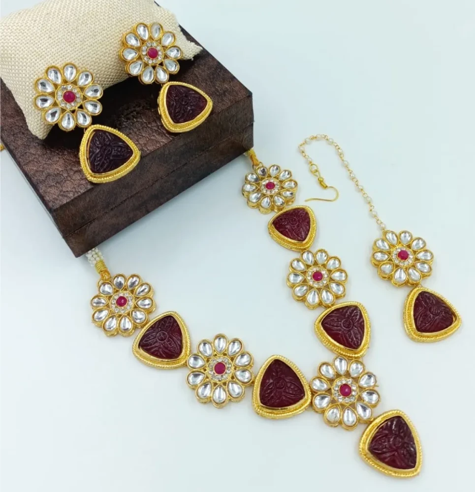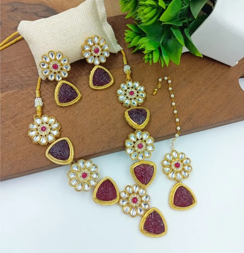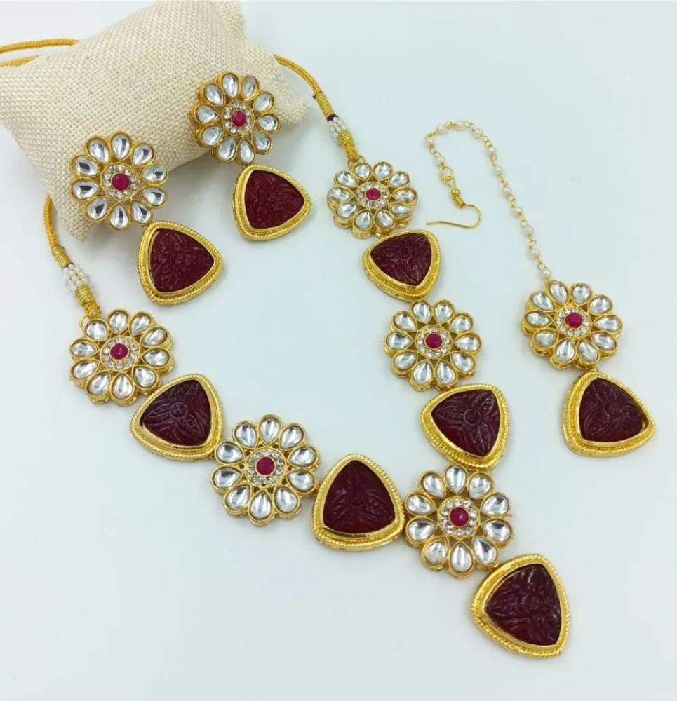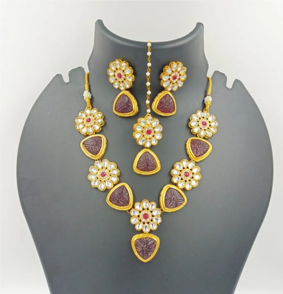 • Type: Includes a complete set with a necklace, earrings, and maangtika, designed to create a harmonious and elegant look.