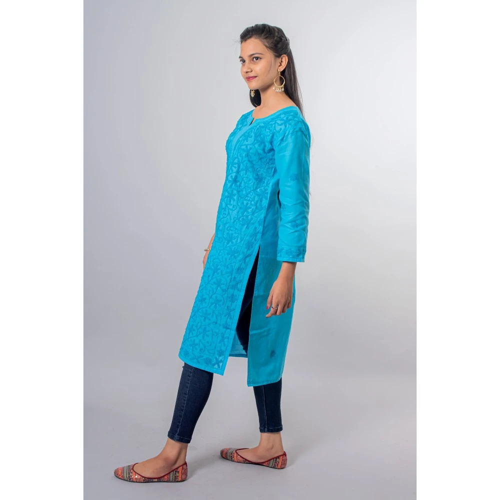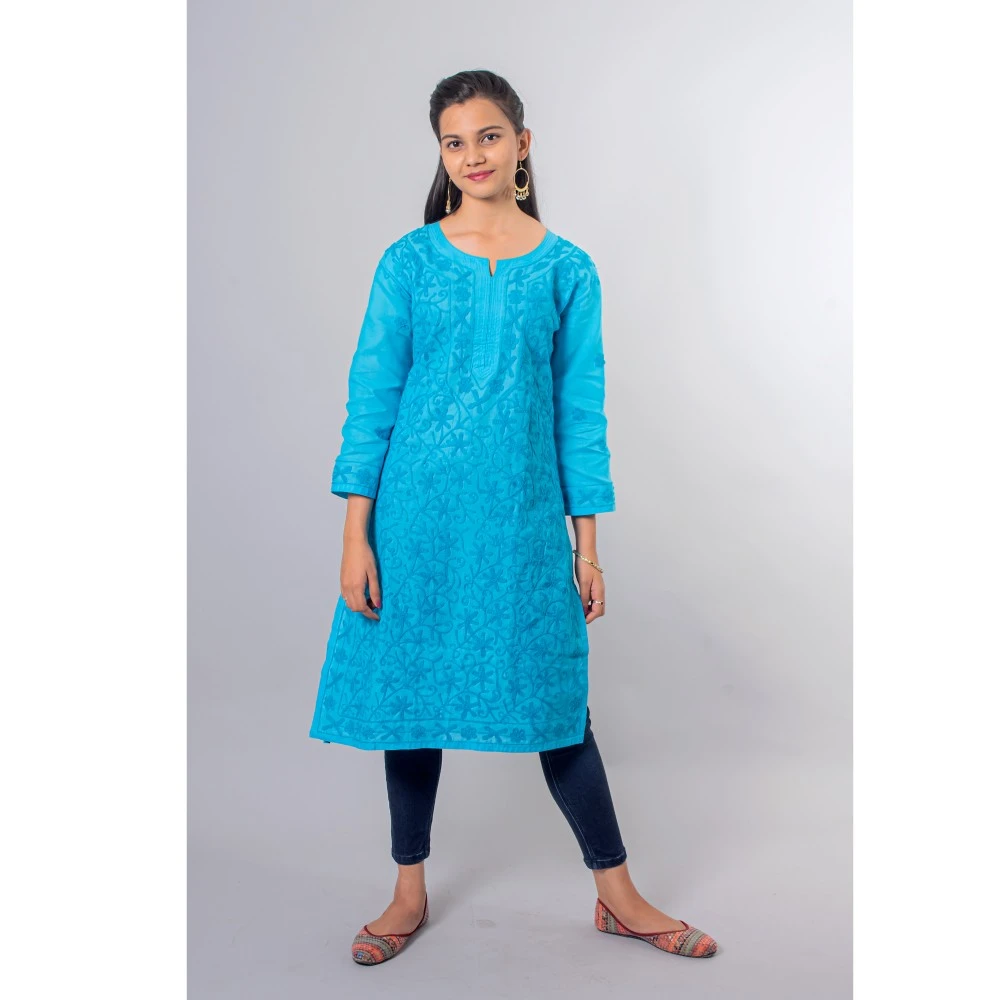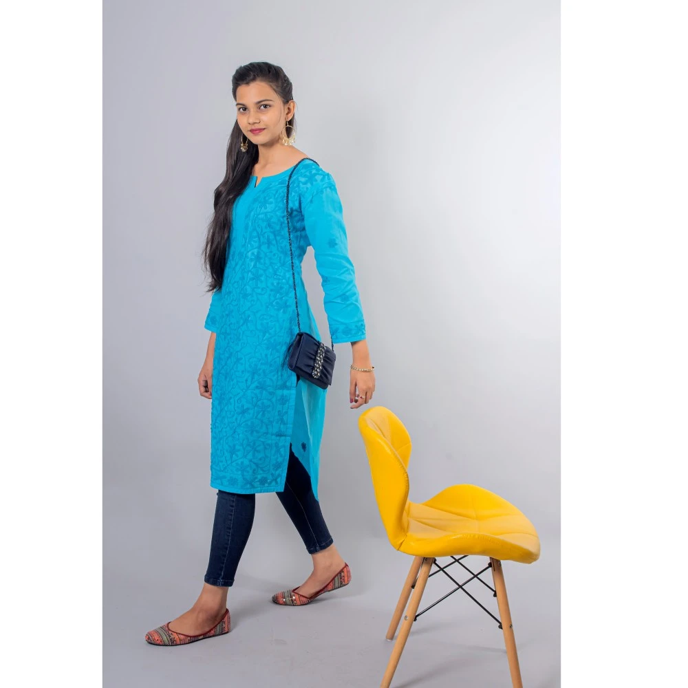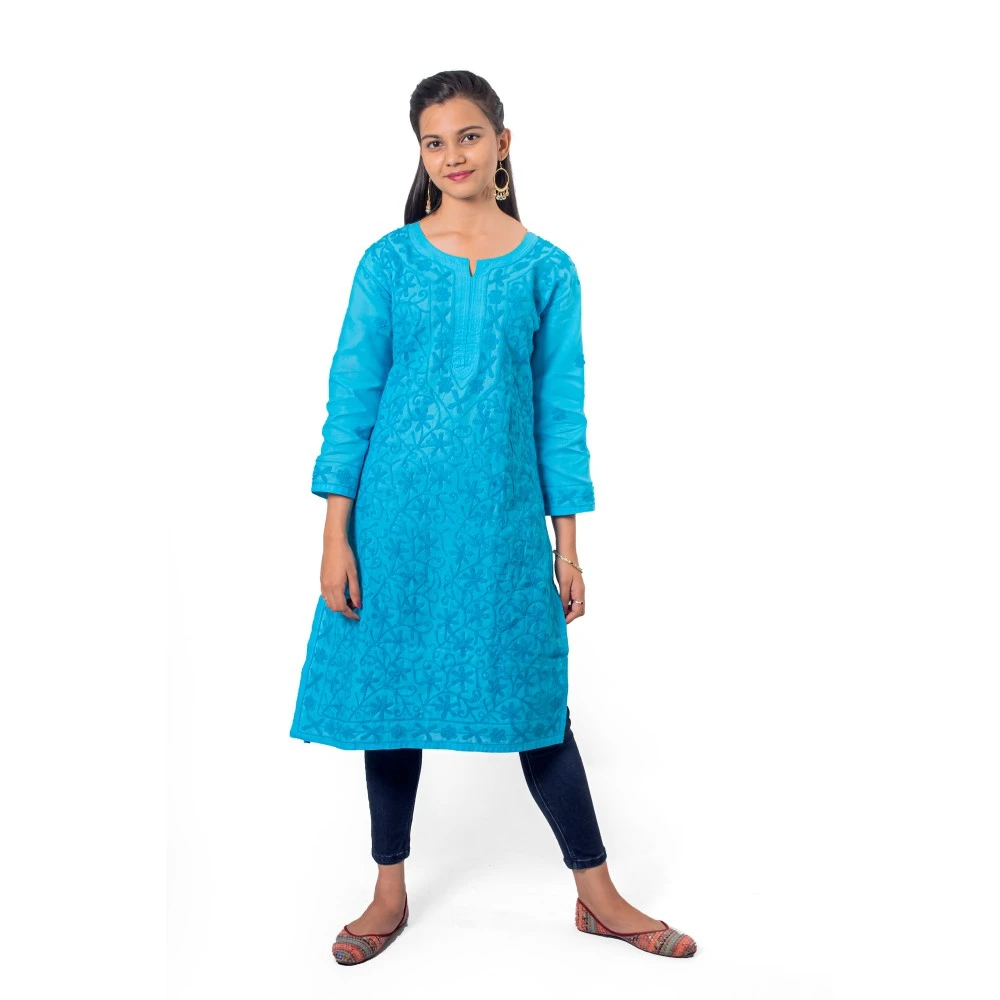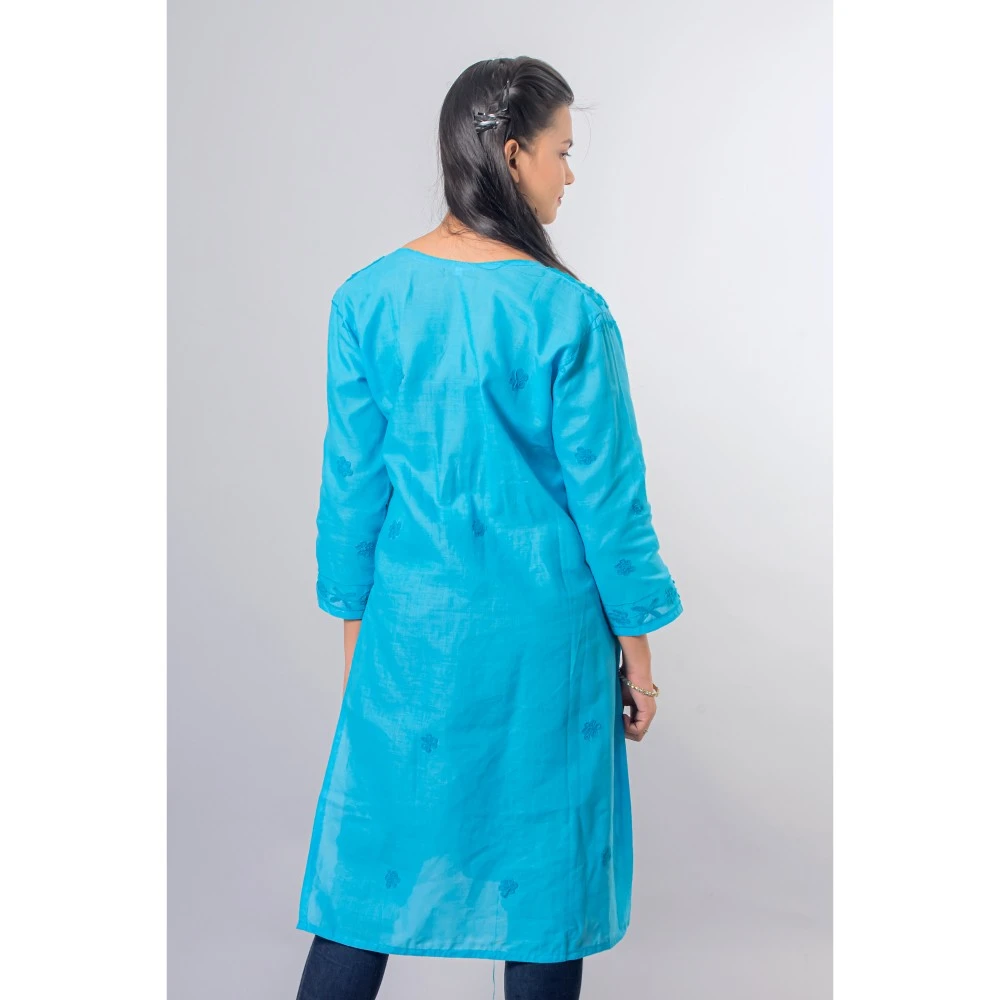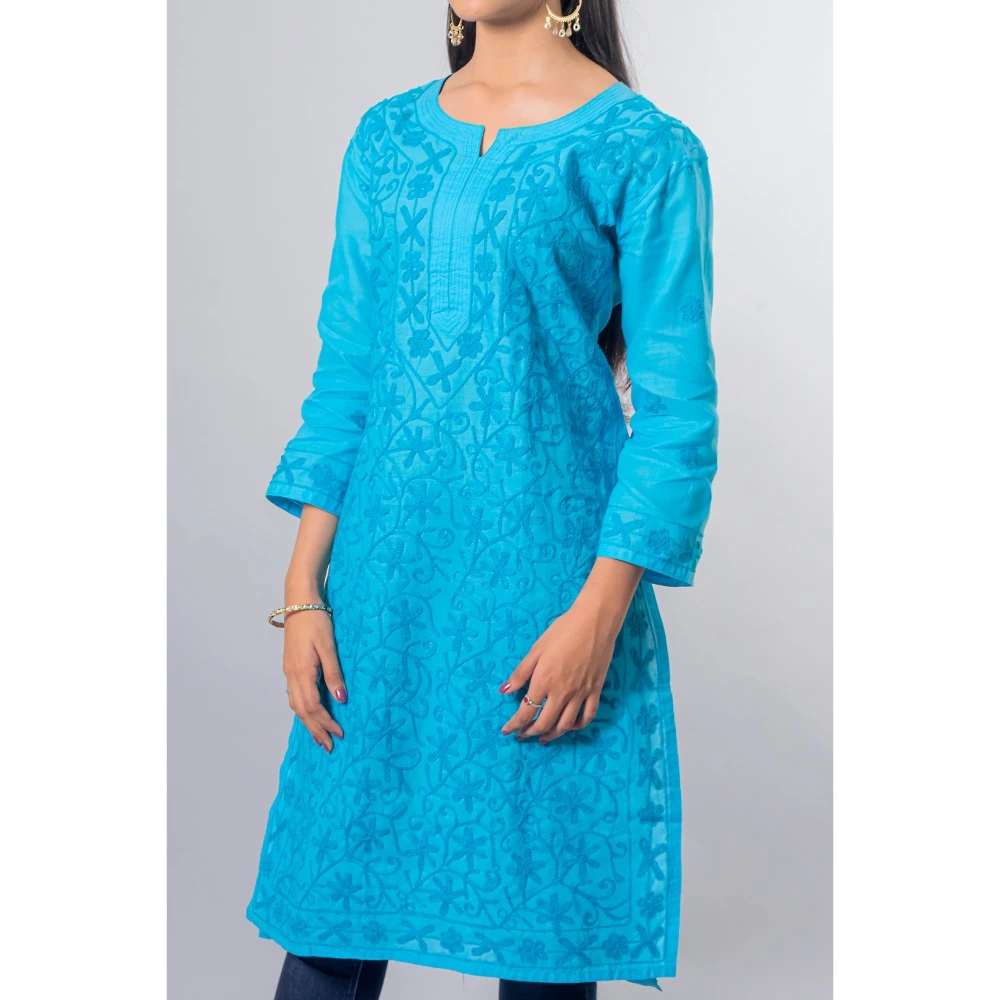 Introducing our latest addition to your wardrobe essentials - the Blue Three-Quarter Sleeve Printed Top. Made from premium quality cotton, this top is designed to offer both comfort and style for your everyday wear.