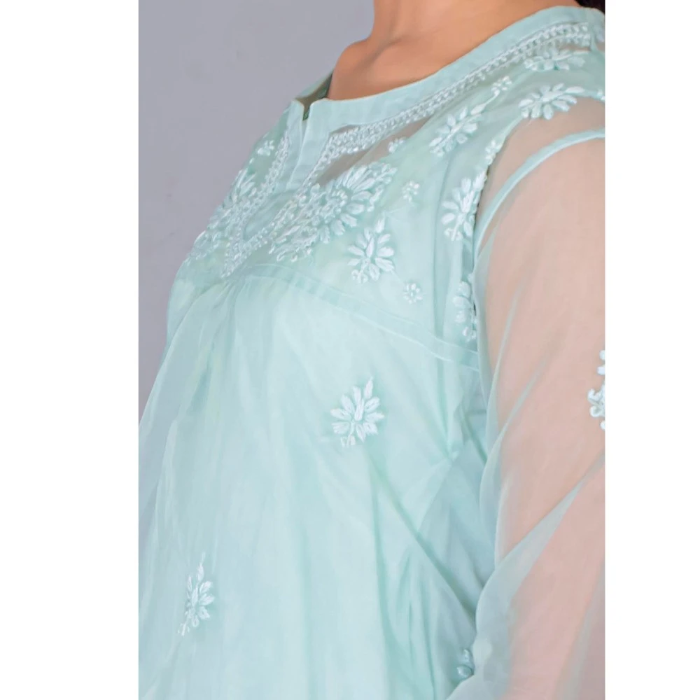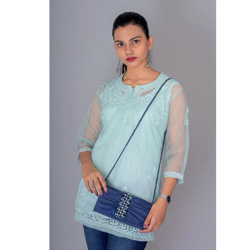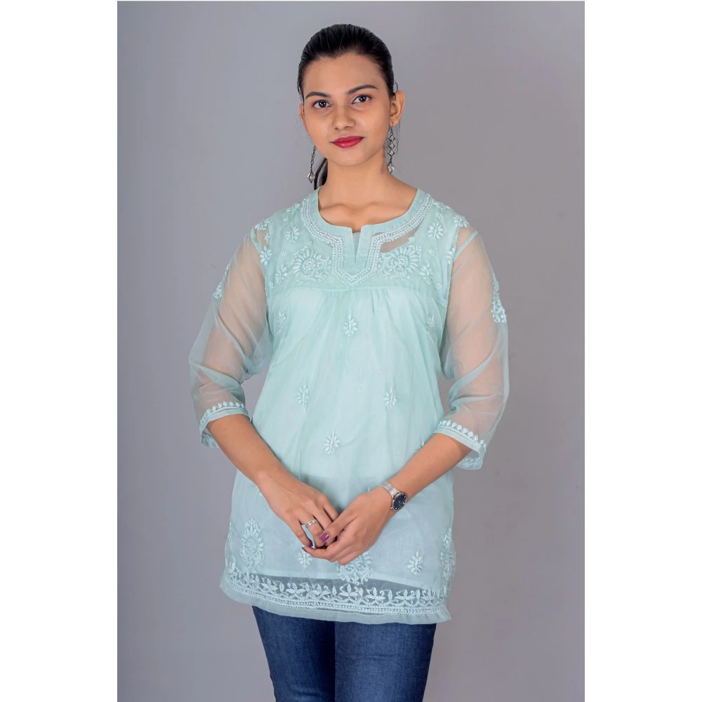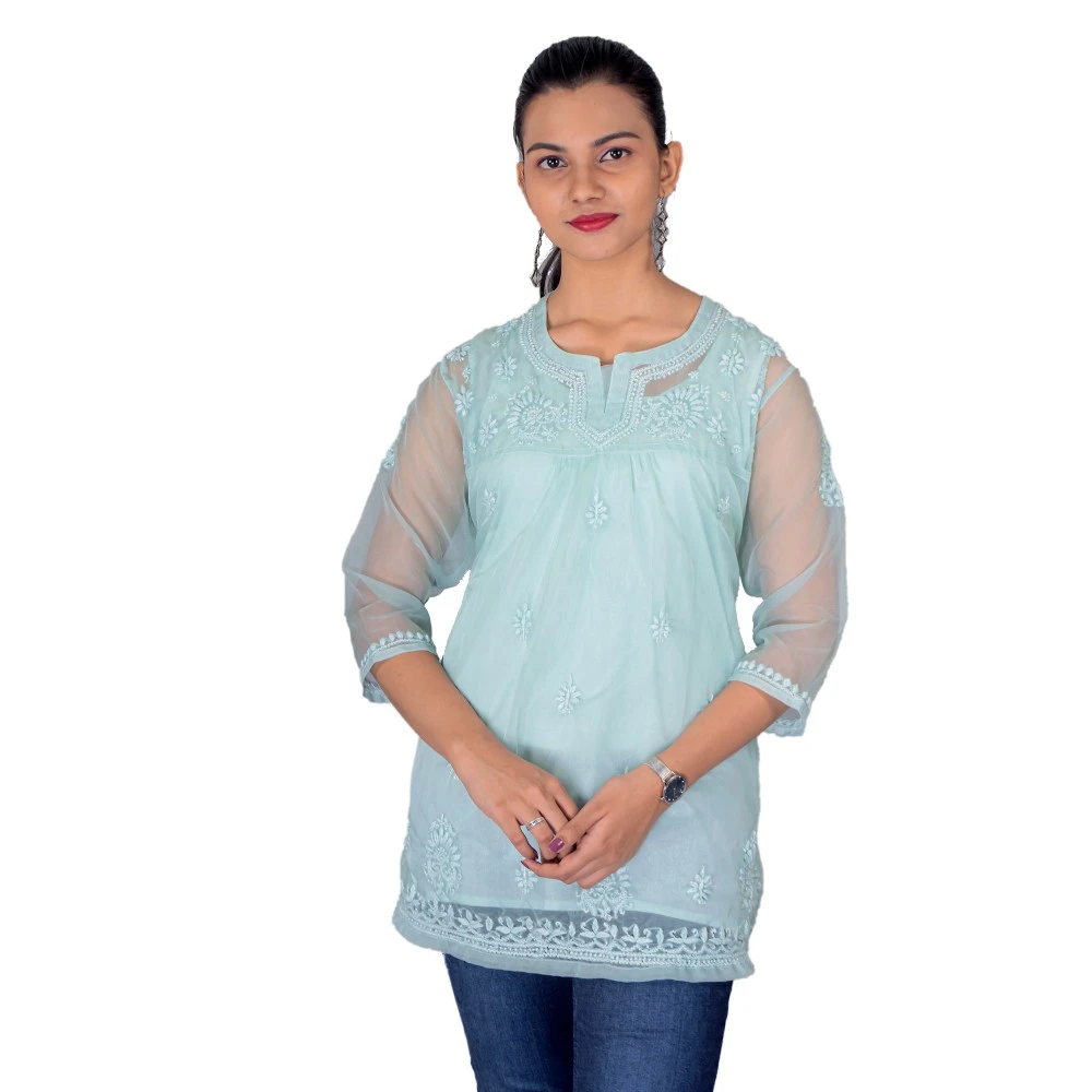 Manal Kreations Organza blue Chikankari short top