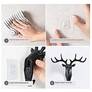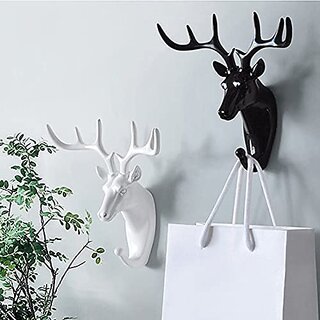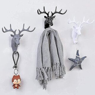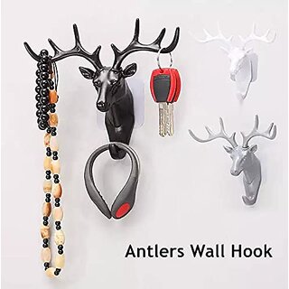 Plastic Deer Head Hanging Antlers Self Adhesive Wall Door Hook (Multicolor)