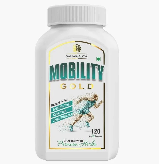 SAHAROGYA Mobility Gold contains clinically researched ingredients with anti-arthritic and anti-inflammatory properties. It strengthens joints, enhances flexibility, and prevents joint deformity. The supplement is made with natural pain-relieving herbs and reinforces joint lubrication, relieving joint pain and promoting healthy bones. Regular use of Mobility Gold can improve your range of motion and get you moving again.