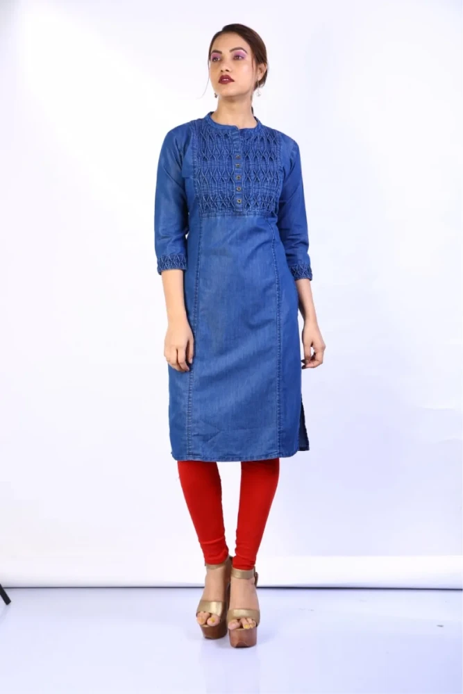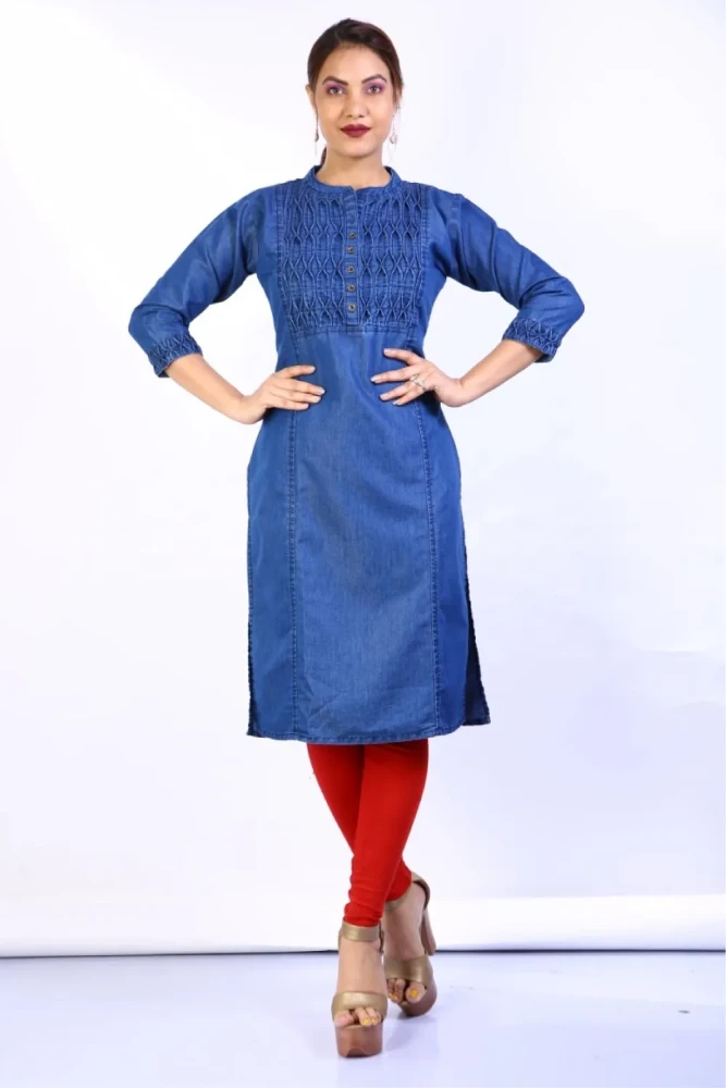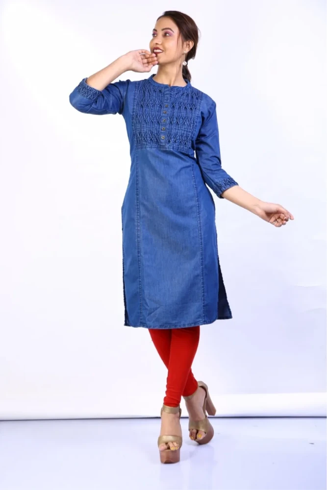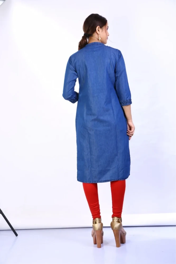 Whether you're heading out for a casual day with friends or attending a small gathering, this denim kurti is a must-have addition to your collection.