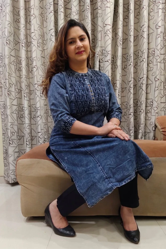 The solid pattern of this kurti allows you to easily pair it with various bottoms—be it leggings, jeans, or palazzos. Whether you're dressing for a casual outing, work, or a relaxed evening, this denim kurti is a chic and reliable choice for any occasion.