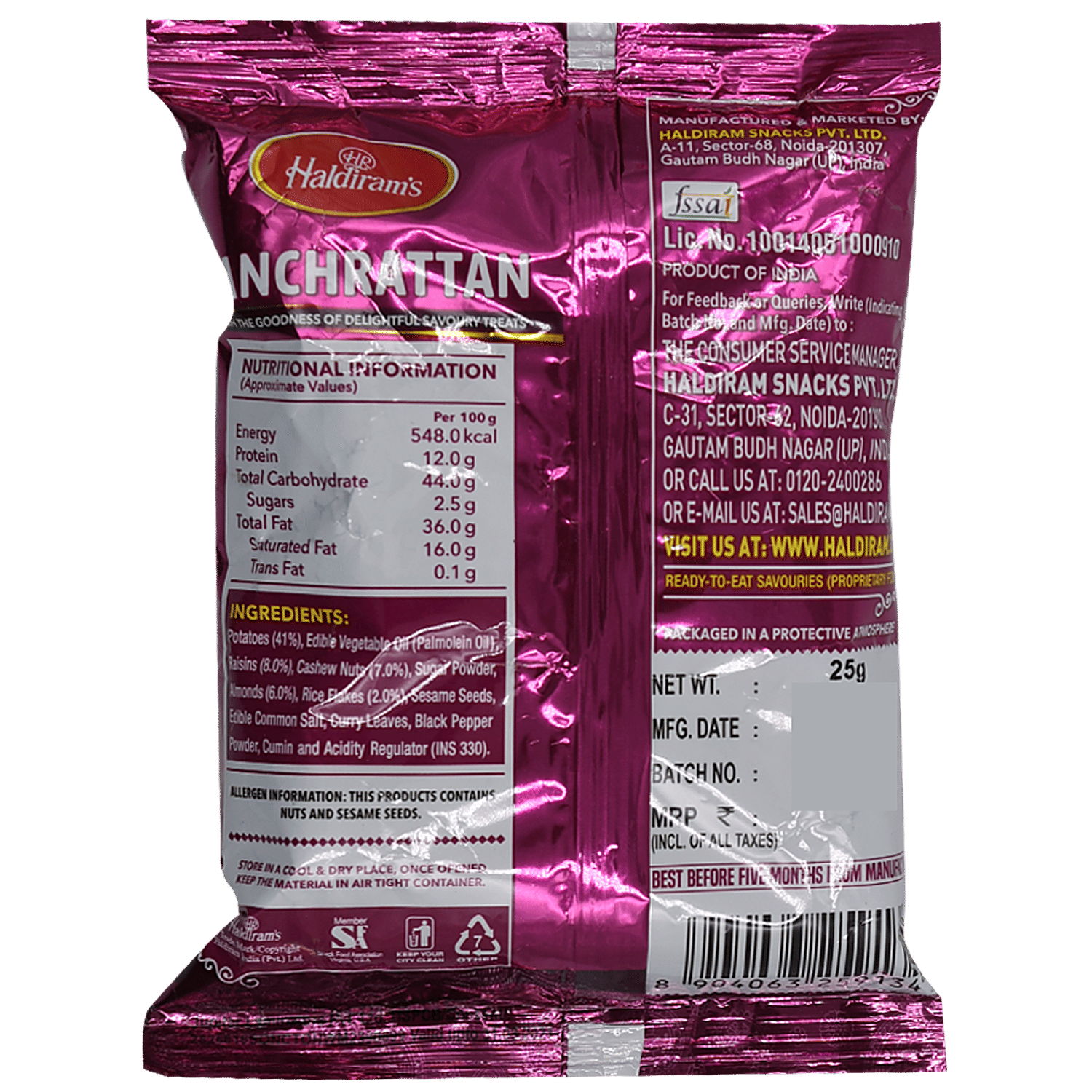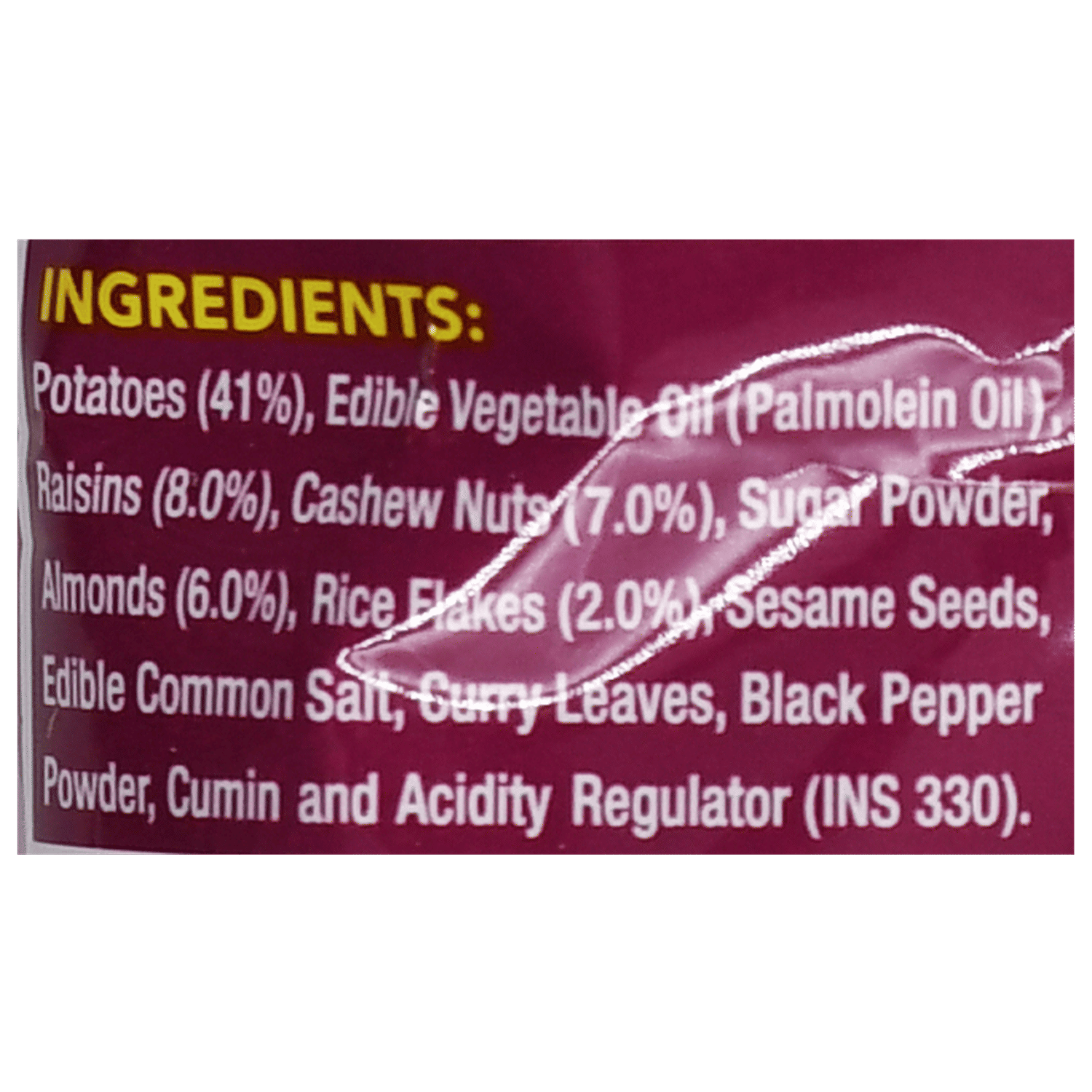 Haldiram panchratan mixture is made of different ingredients which add additional flavor to the snack. It is made of mixed flavor of sour and sweet rice flakes, potato sticks and dry fruits. It contains fiber, protein, iron and calories. It is a nutrition food and mostly liked by children because it has both sweet and sour flavor in it. It contains low cholesterol and low fat. These mixtures are the best time pass snacks.