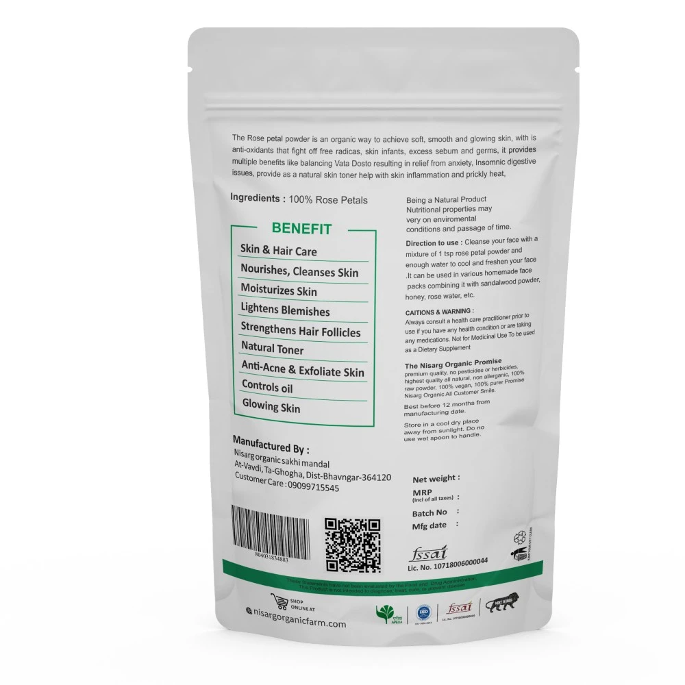 • How to use - Apart from Medicinal uses, Our Organic Red Rose Petal Powder can be used as a Culinary ingredient - to impart Rose flavor and pinkish tint to your recipes. Most commonly to prepare hot or cold drinks- Rose tea, Cooling Rose milk- Rabri, kulfi, ice cream, kombucha, wines, jams, jellies, chocolates, candies, aromatic cakes, and cookies. Our Organic Red Rose Petal Powder can also be used as an anti-aging, exfoliating facemask to reduce dead skin, and hyperpigmentation, and rejuvenate the skin. You can use it in your DIY lip balm, blush, body lotion, and various other makeup recipes to impart pinkish tone and rose fragrance.