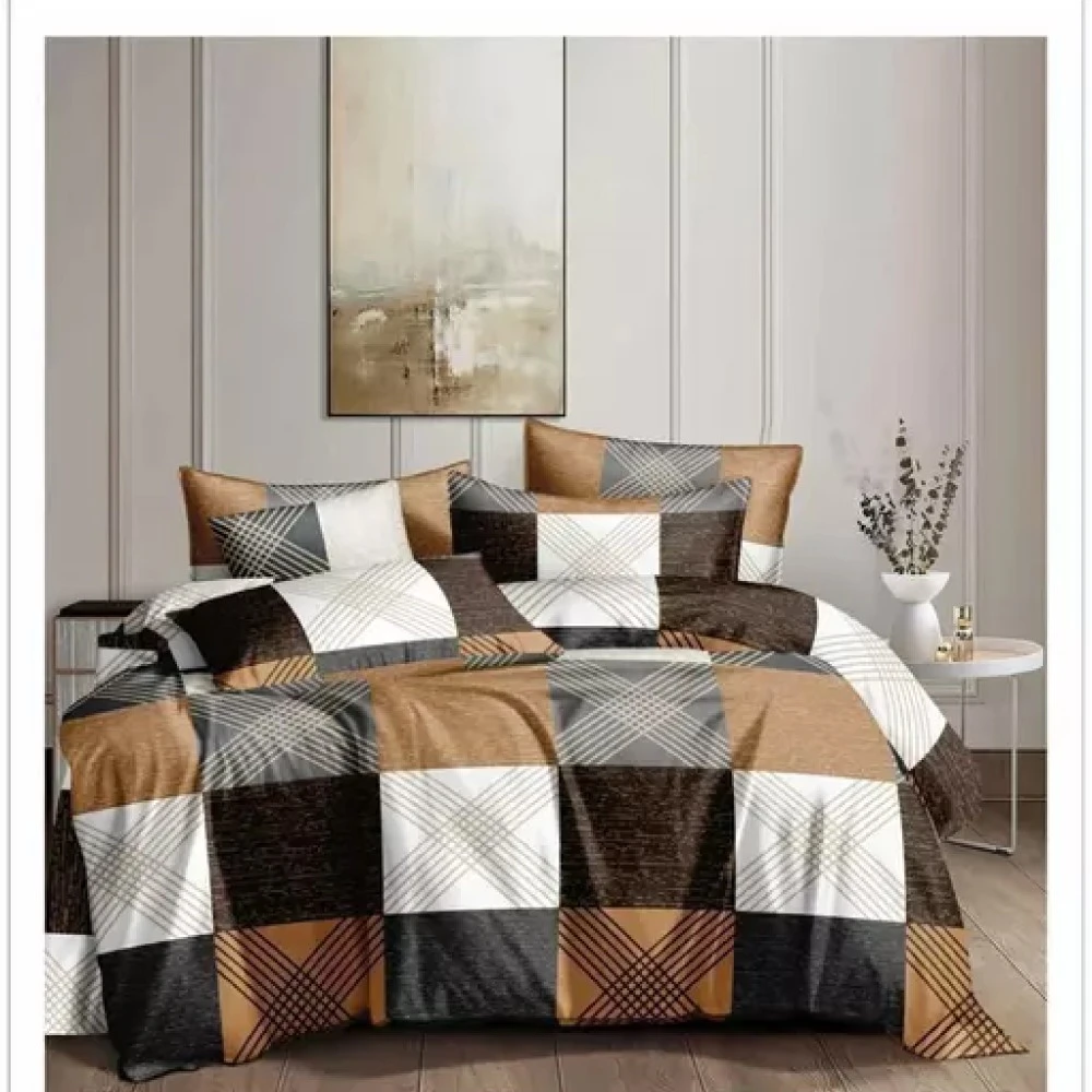 The flat sheets are designed with a checked print, adding a touch of contemporary elegance to your bedroom. The 210 thread count ensures a super fine and smooth texture, providing a lavish feel against your skin. This bedsheet set is meticulously crafted for double king-sized beds, measuring 86x86 inches.
