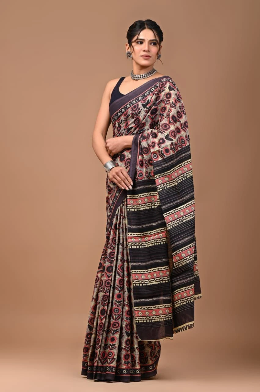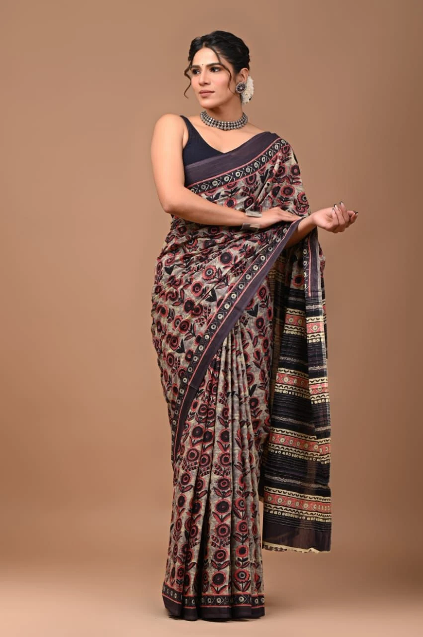 Tag: cotton printed saree blouse women wear ethnic wear women clothes clothing brown