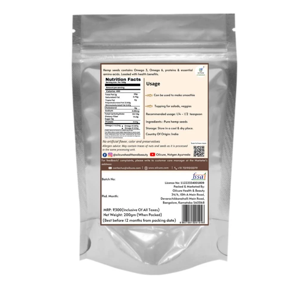 Nxtgen Ayurveda Hemp seeds are superfood as health supplements. Although marijuana comes from the same plant, hemp seeds only contain a trace amount of THC, the active ingredient in marijuana, and these will not get you high. In fact, these hemp seeds are safe and very healthy to have orally. Hemp seeds are a rich and balanced source of omega-6 and omega-3 polyunsaturated fatty acids (PUFAs), it has an excellent 3:1 balance of omega-3 and omega-6 fatty acids, which promote cardiovascular health.