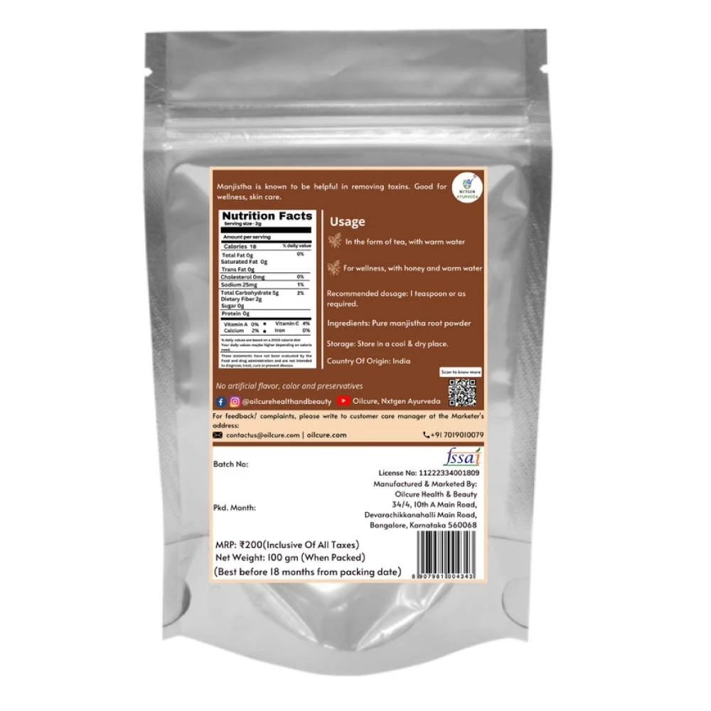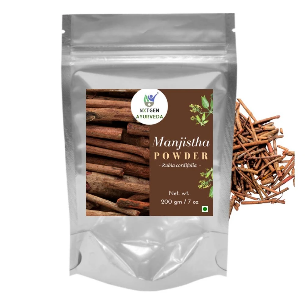 Manjistha is helpful in removing toxins  present in blood. These toxins are responsible for various skin diseases and joint disorders. It is Considered best natural treatment for Pimples, Acne and Varicose Veins. Improves complexion of skin, improves quality of voice and improves functioning of liver. Manjishtha also corrects the functioning of the whole urinary system and prevents kidney stones.