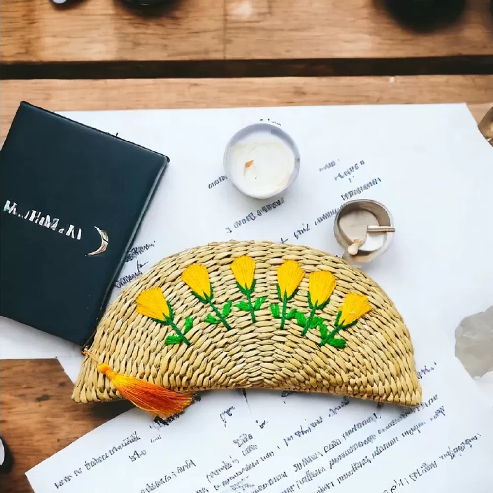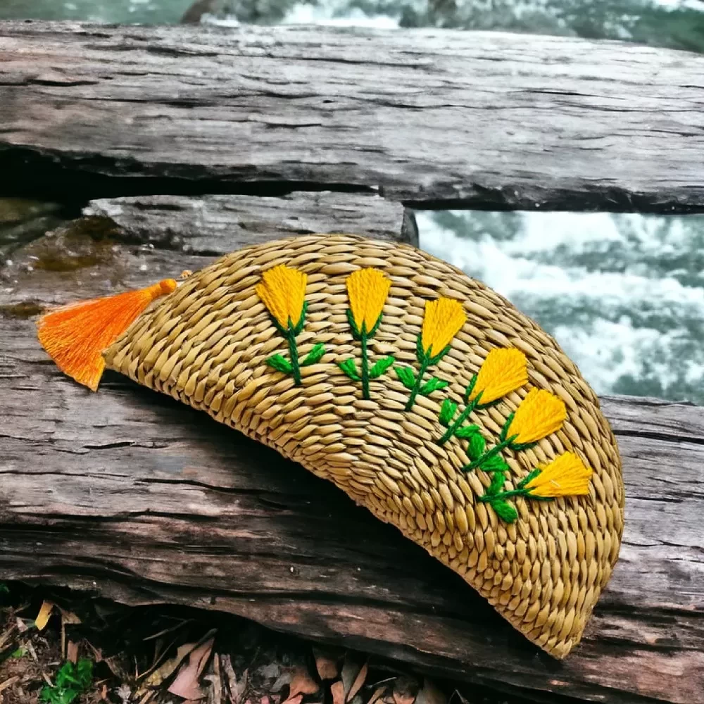 Ethnic Purse - Water Reed Kauna Grass Yellow - Handcrafted from natural water reed (Kauna grass), this purse is a beautiful blend of tradition and sustainability.