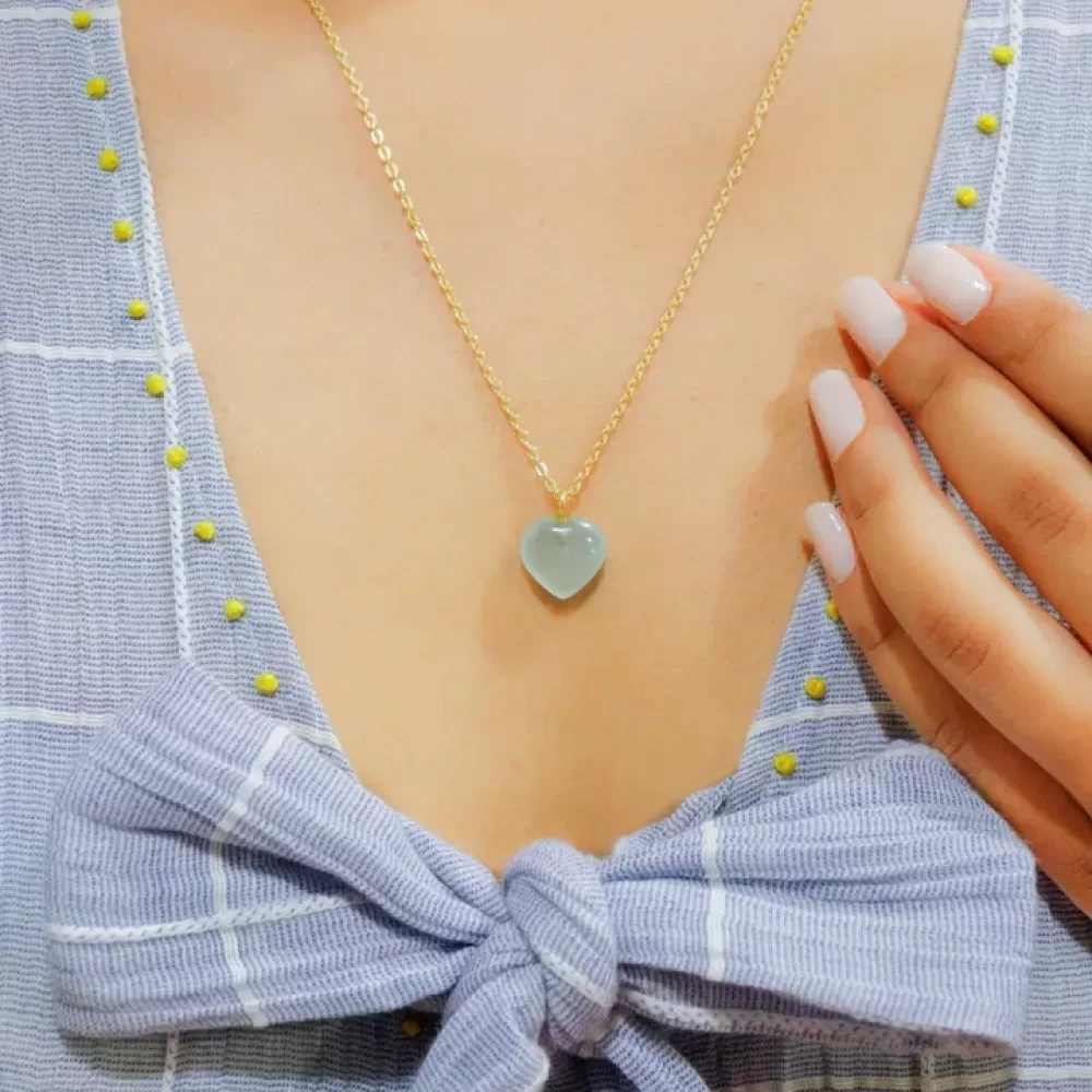 Green Chalcedony Stone Pendant with Golden Chain